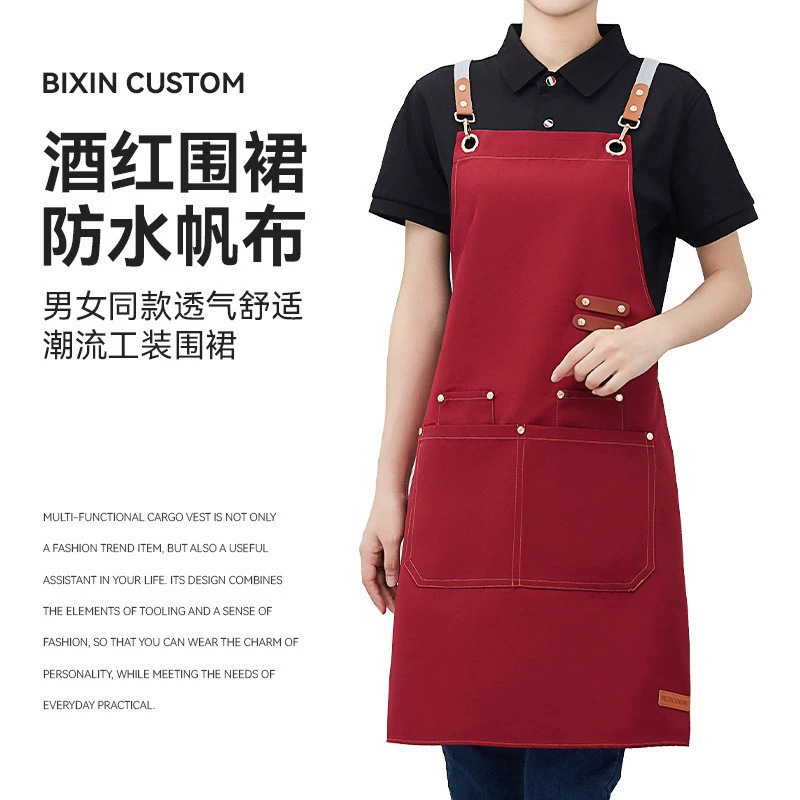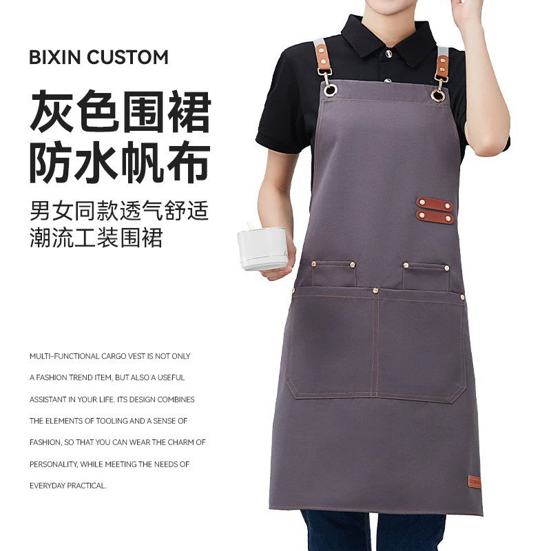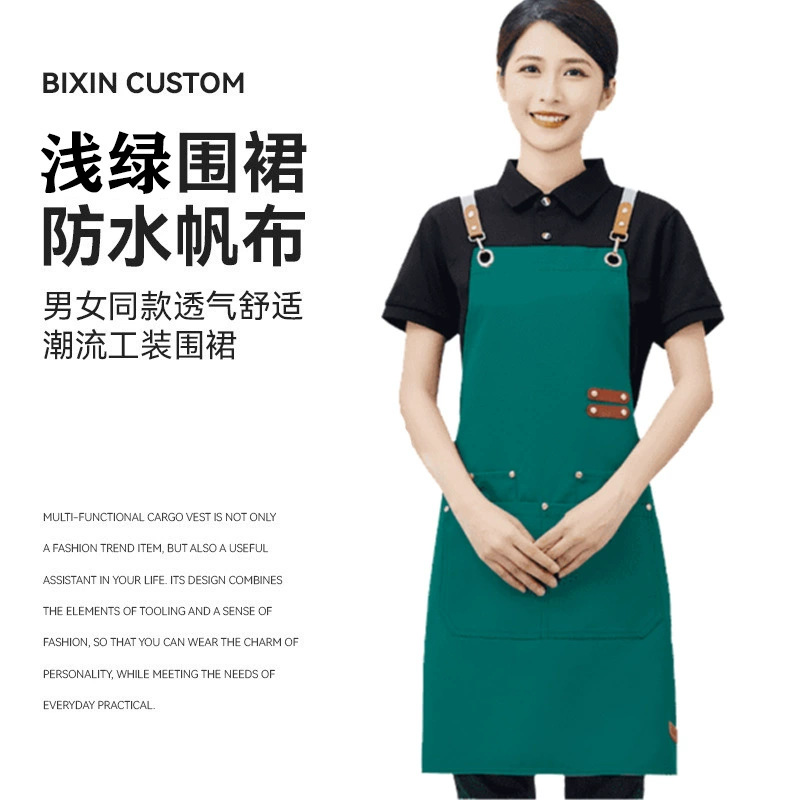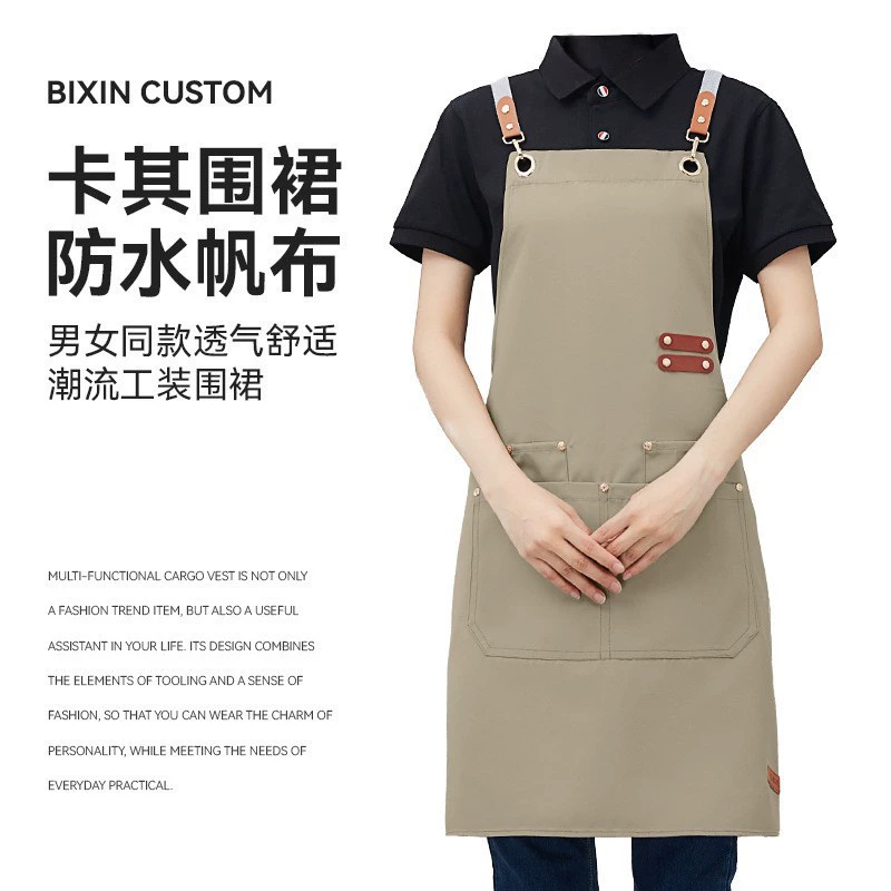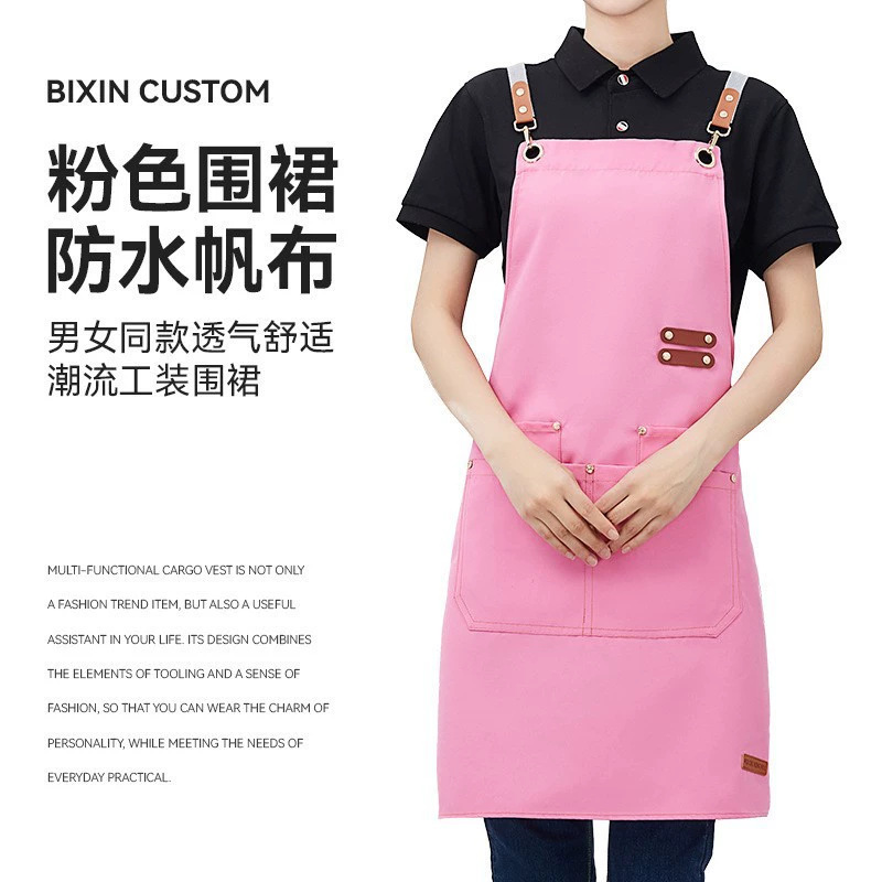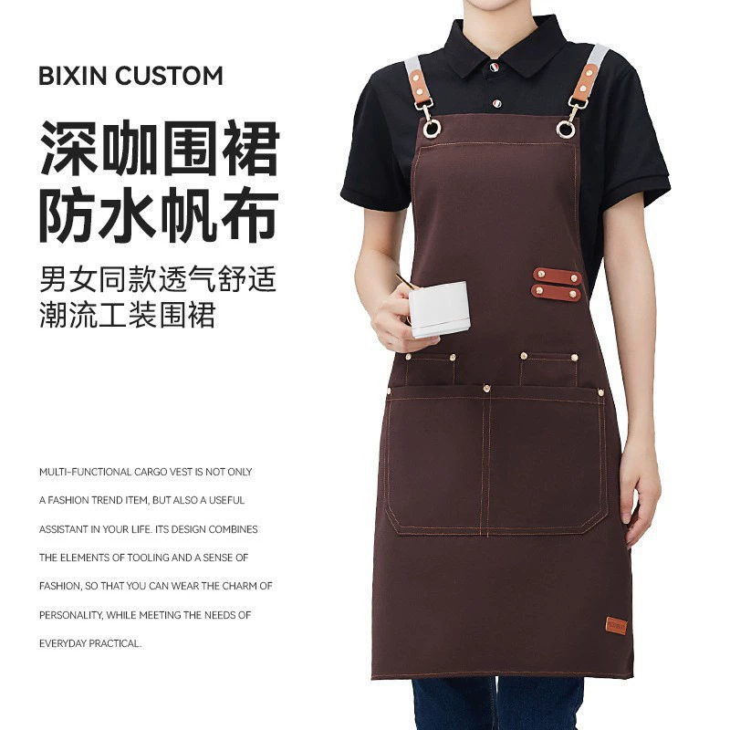 광고용 캔버스 앞치마 맞춤형 로고 인쇄 방수 방유 케이터링 커피숍 주방 가정용 앞치마 여성용 해외배송