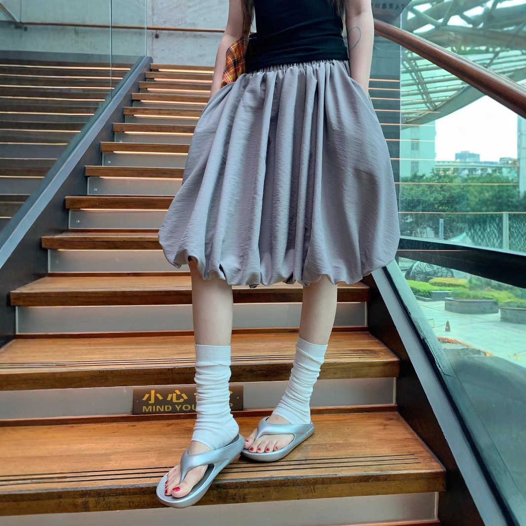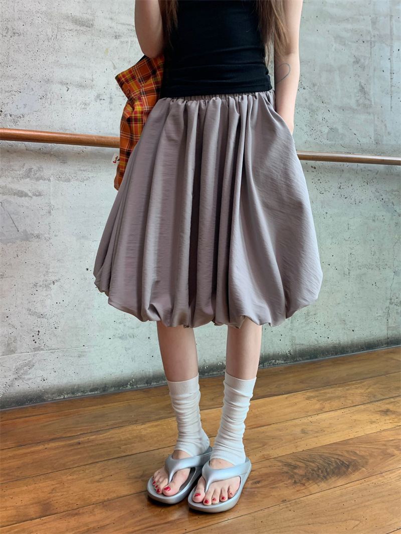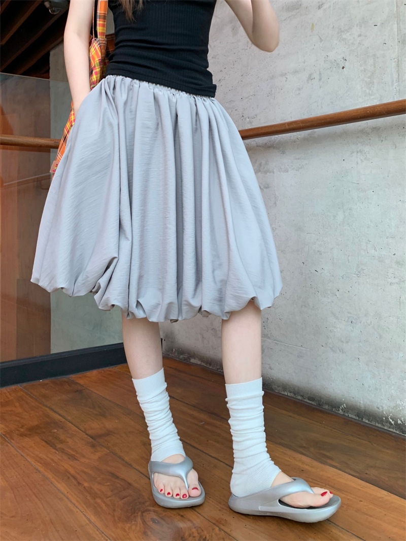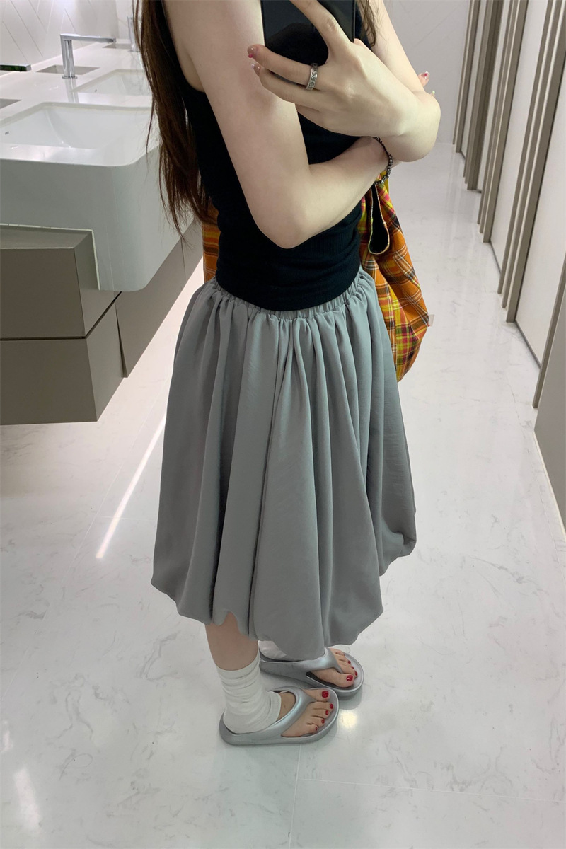 리얼 샷 2025 ~ 레트로 디자인 그레이 라이트 버드 스커트 단어 푹신한 조커 스커트