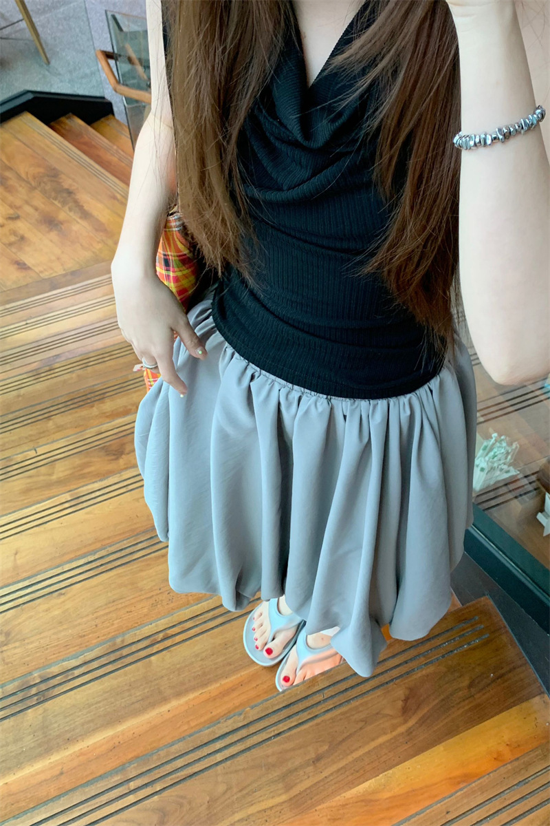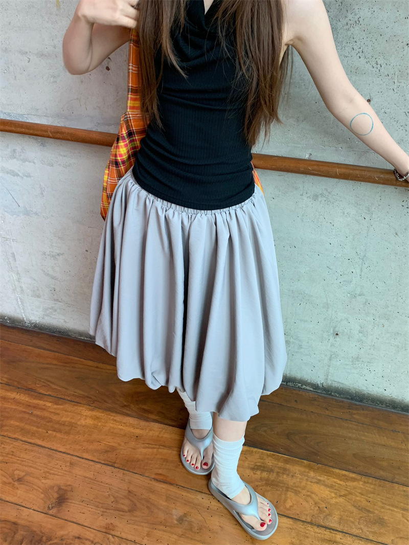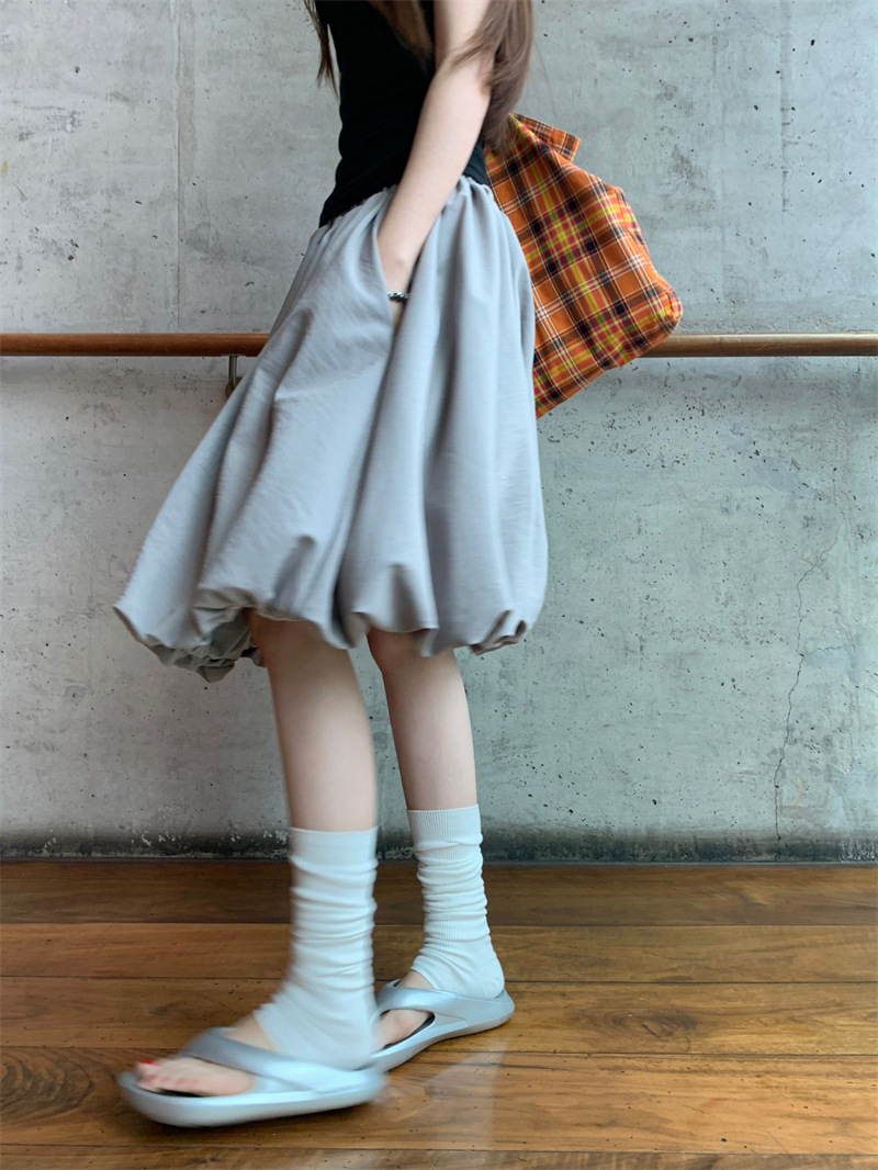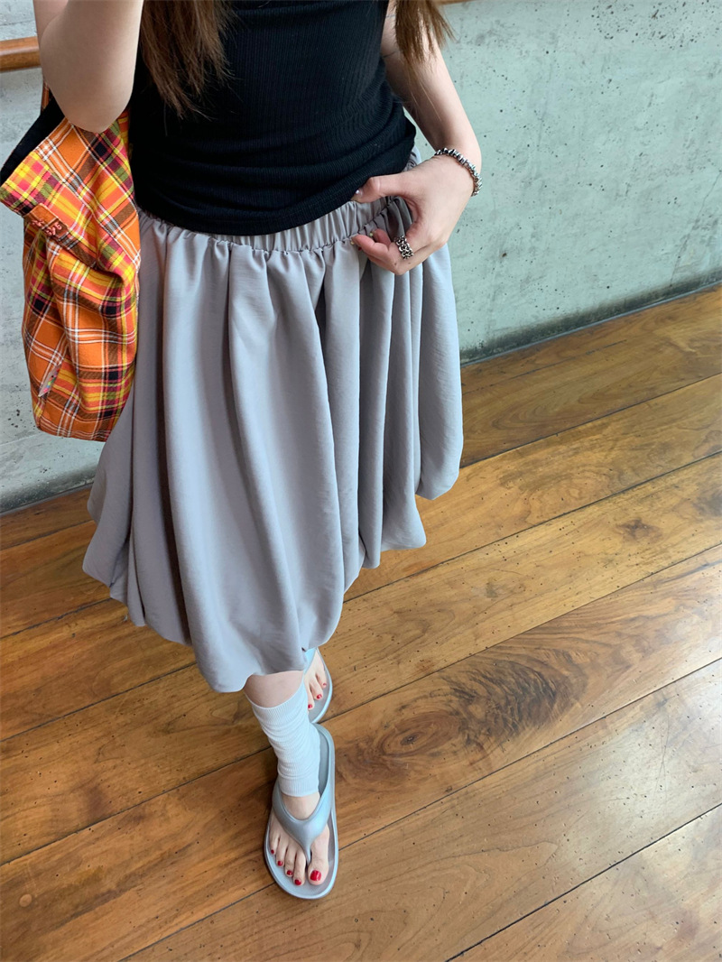 리얼 샷 2025 ~ 레트로 디자인 그레이 라이트 버드 스커트 단어 푹신한 조커 스커트