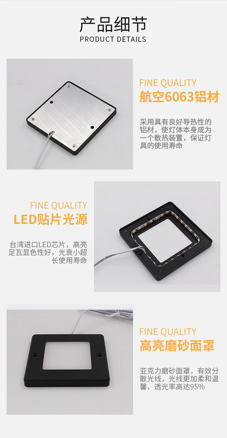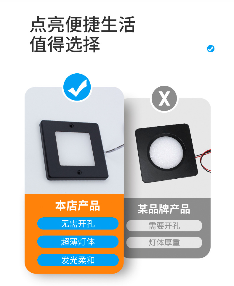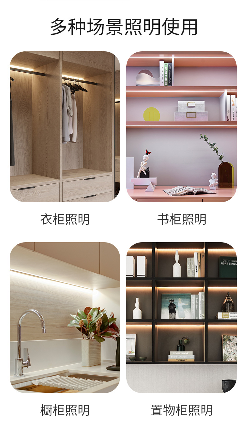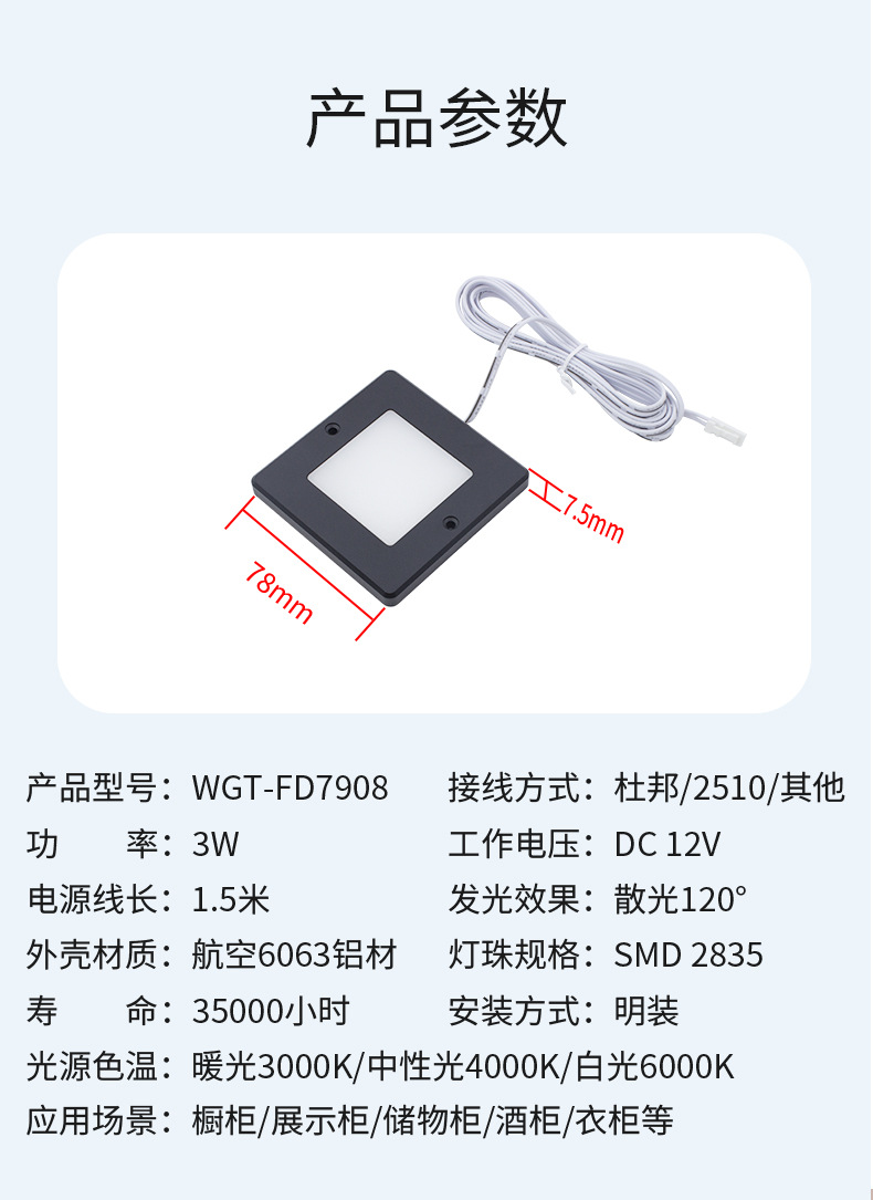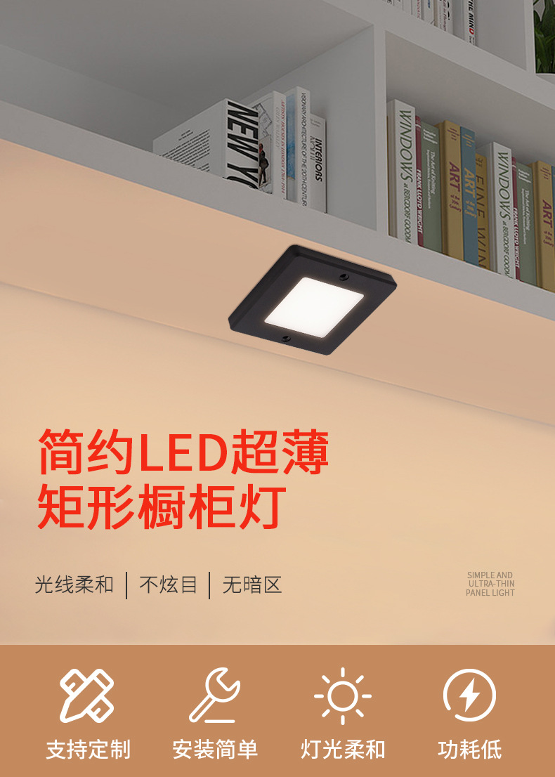 표면 장착형 사각형 LED 캐비닛 조명, 와인 캐비닛, 입구 디스플레이 장식 조명, 스마트 야간 조명, 3색 디밍 주방 및 욕실 조명