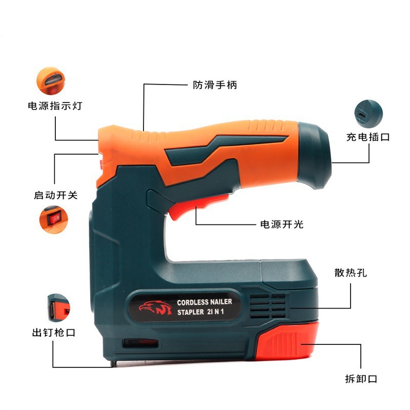 가정용 휴대용 리튬 전동 못총, 못 막힘 없음, 목공 및 장식용 에어 못총, 못 2000개 포함