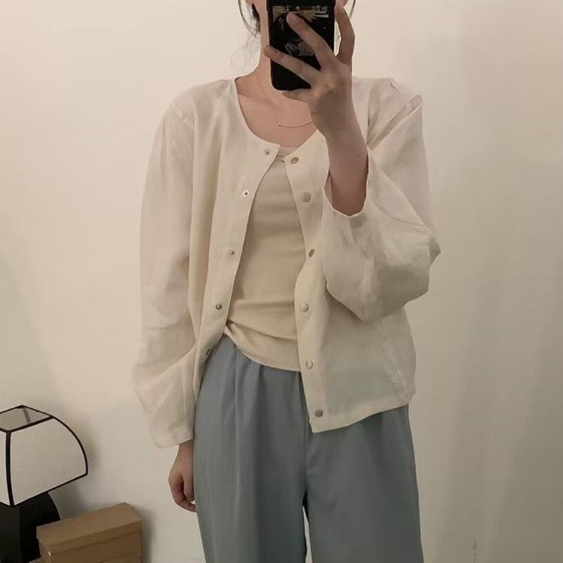 한국 스타일 간단한 다목적 싱글 브레스트 얇은 라미 건조 재킷 여성의 2024 년 여름 새로운 캐주얼 탑스토어 가기