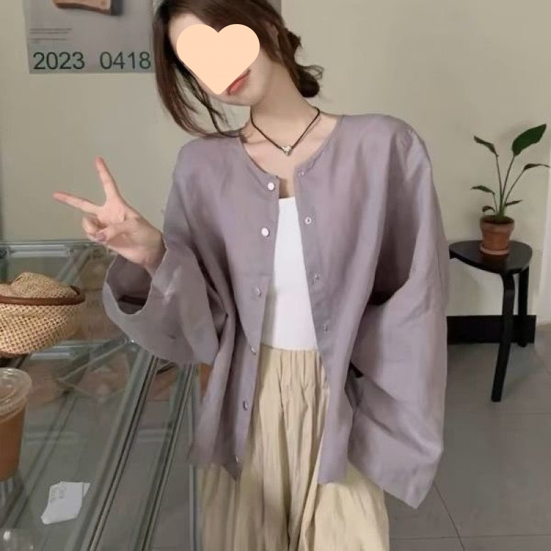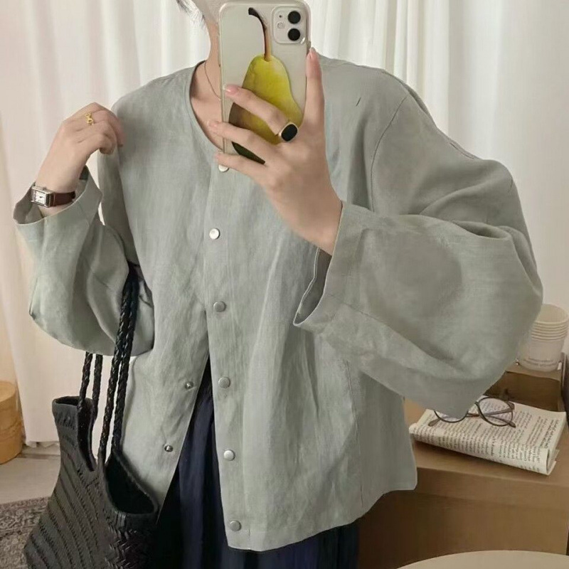 한국 스타일 간단한 다목적 싱글 브레스트 얇은 라미 건조 재킷 여성의 2024 년 여름 새로운 캐주얼 탑
