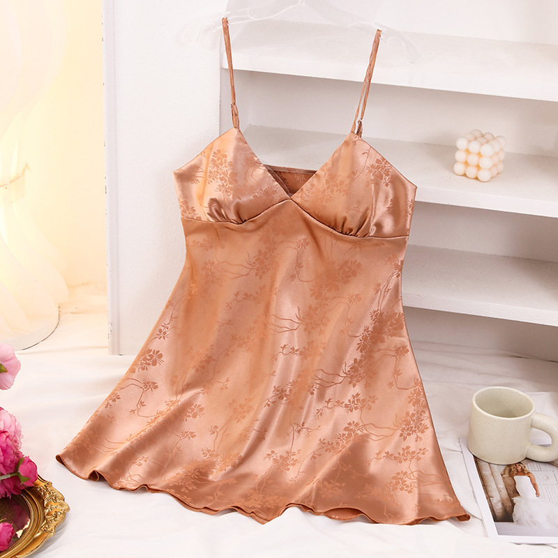 섹시한 짧은 백리스 홈 나이트 드레스 솔리드 컬러 여름 자카드 v 넥 서스펜더 스커트 여성을위한 모조 실크 얇은 드레스