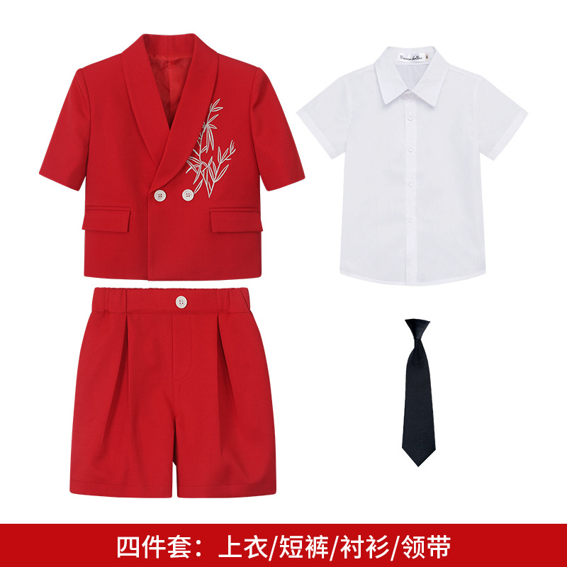 • 레드 4종 세트 (반팔 셔츠+슈트+반바지+넥타이)