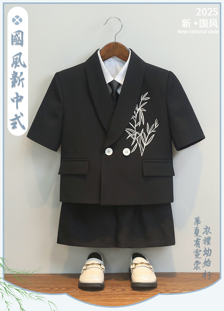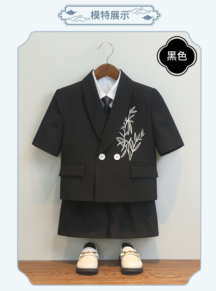 소년들의 새로운 중국식 한푸 여름 새로운 국가 스타일 자수 세트 공연 의류 어린이 플라워 보이 호스트 세트 세트스토어 가기