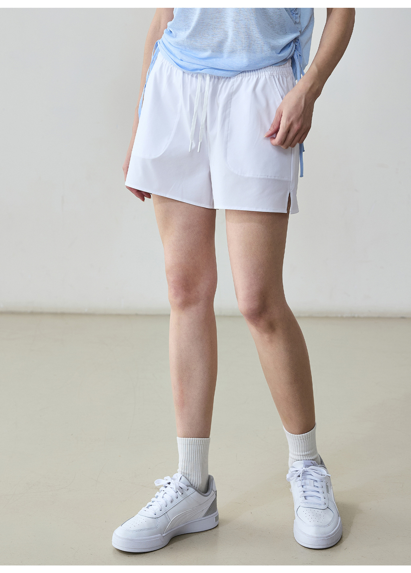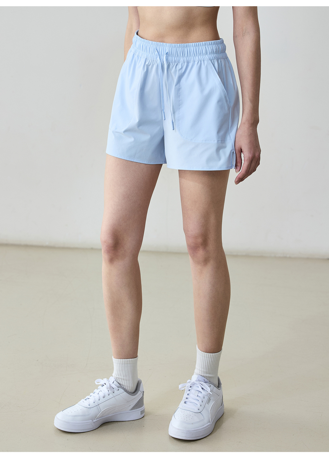 여름 통기성 캐주얼 스포츠 반바지 여성의 빠른 건조 현악기 트리플 바지 느슨한 큰 포켓 야외 달리기 피트니스 바지스토어 가기