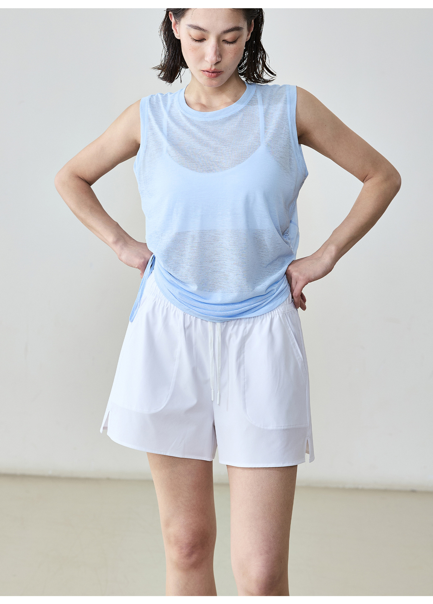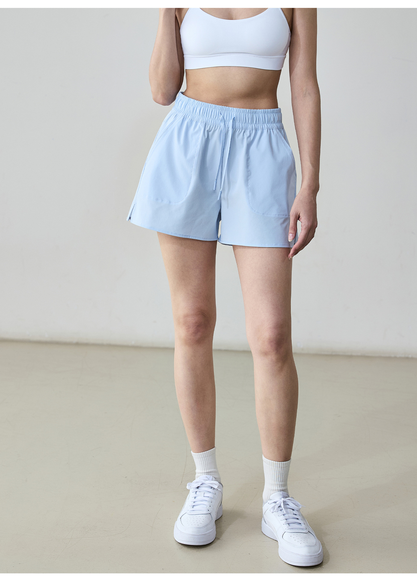 여름 통기성 캐주얼 스포츠 반바지 여성의 빠른 건조 현악기 트리플 바지 느슨한 큰 포켓 야외 달리기 피트니스 바지