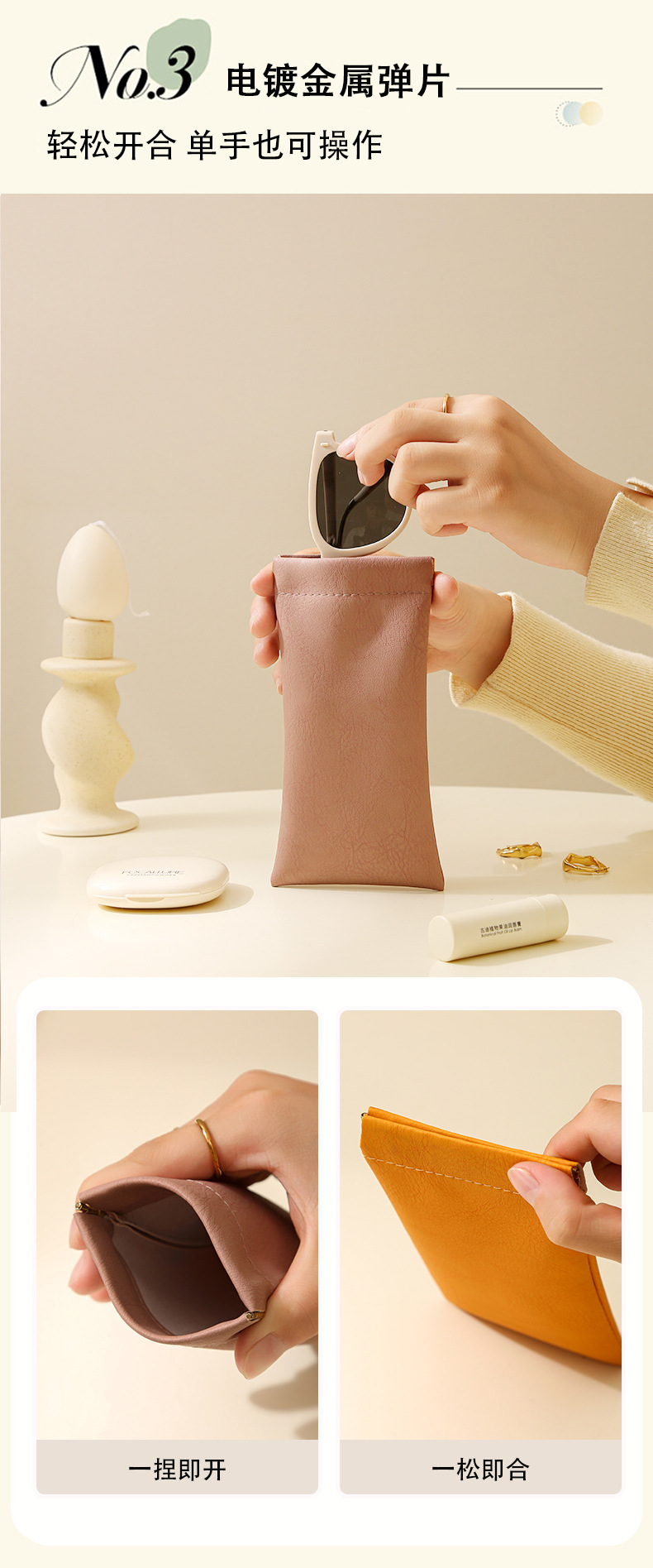데이터 케이블 보관 가방, 헤드폰, 휴대용 립스틱 가방, 스냅 안경, 자동 닫힘 선글라스 보관 가방스토어 가기