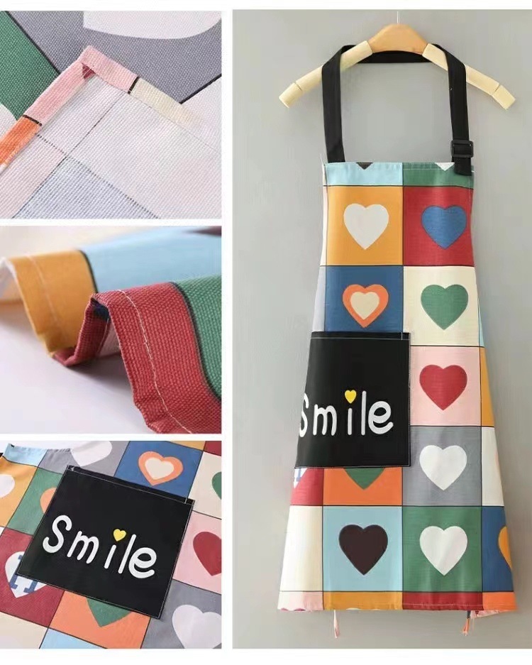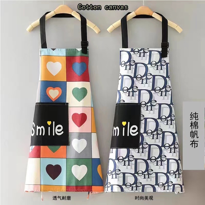 ∝세련된 캔버스 프린트 홀터넥 앞치마 두꺼운 원단 통기성 및 내유성 주방 작업복 여성 작업복 내마모성 포켓스토어 가기