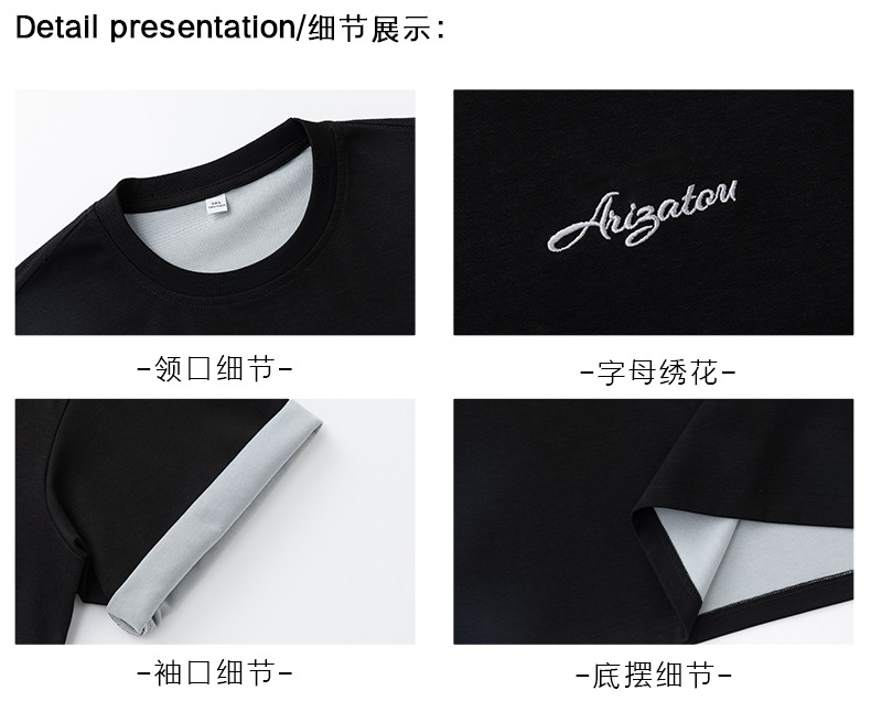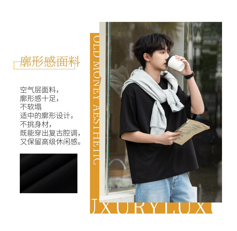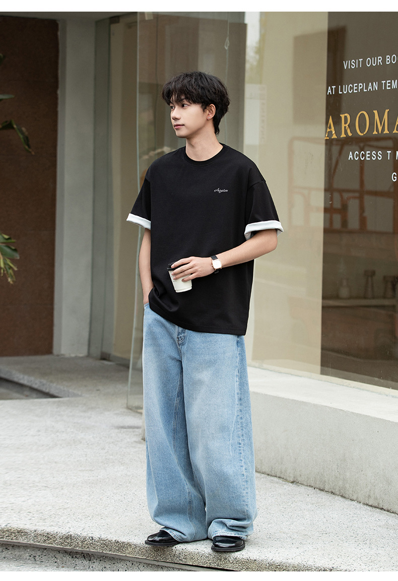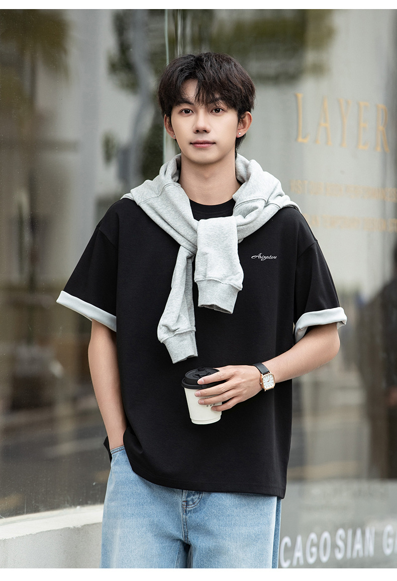 가벼운 럭셔리 올드 머니 대조 문자 자수 반팔 티셔츠 남성 여름 커플 루즈 트렌디 브랜드 캐주얼 반팔 티셔츠 q