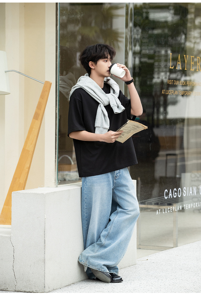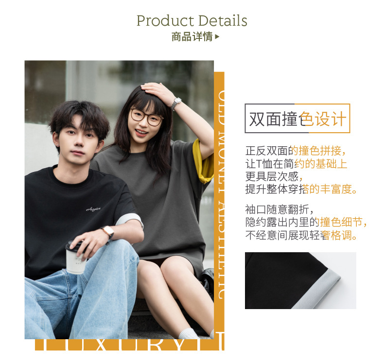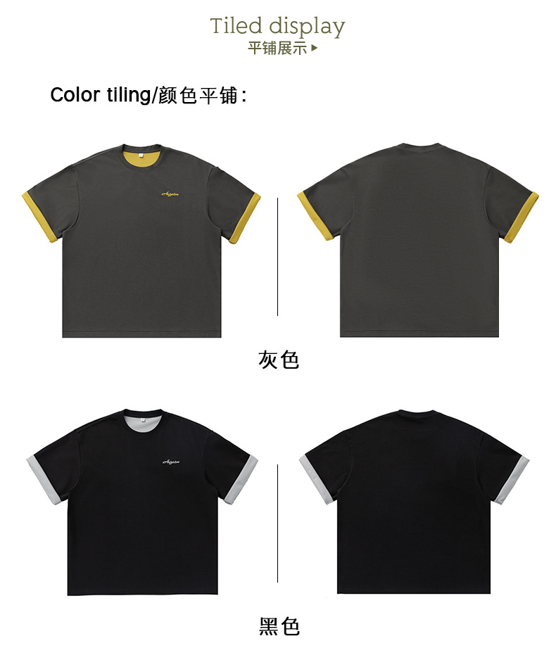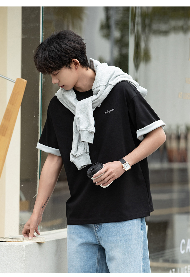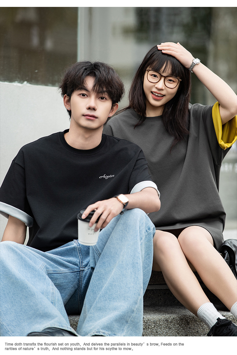가벼운 럭셔리 올드 머니 대조 문자 자수 반팔 티셔츠 남성 여름 커플 루즈 트렌디 브랜드 캐주얼 반팔 티셔츠 q스토어 가기