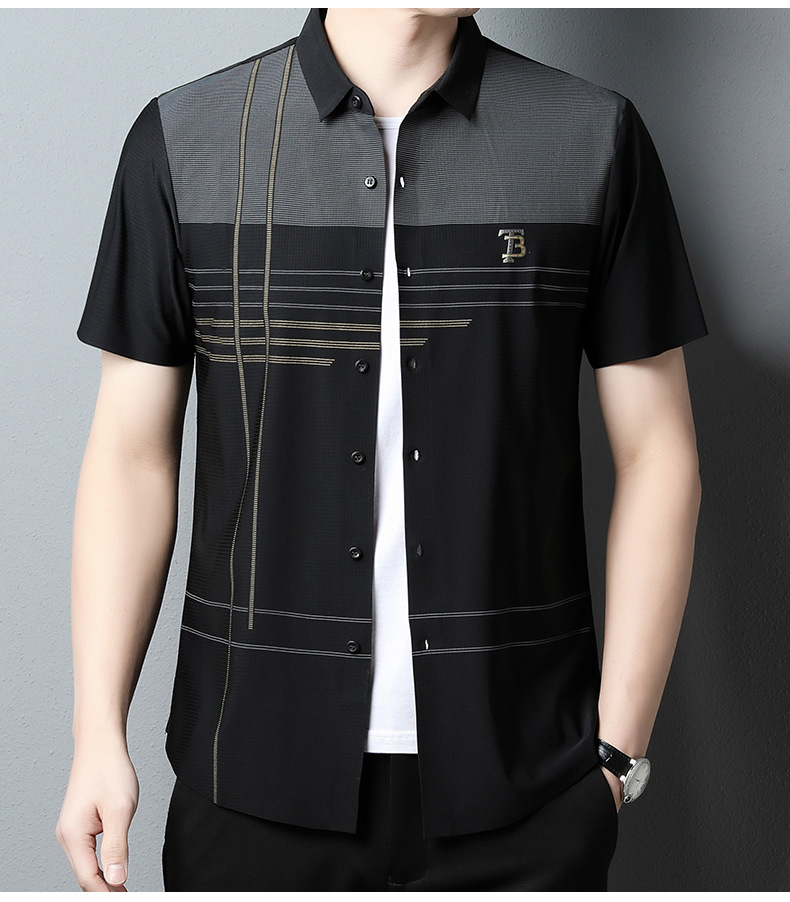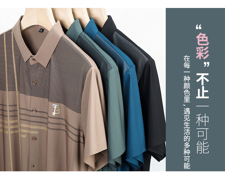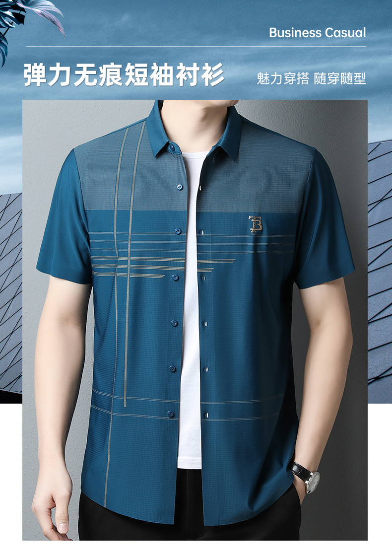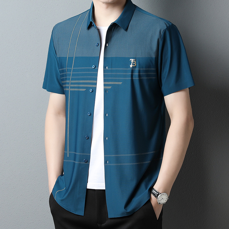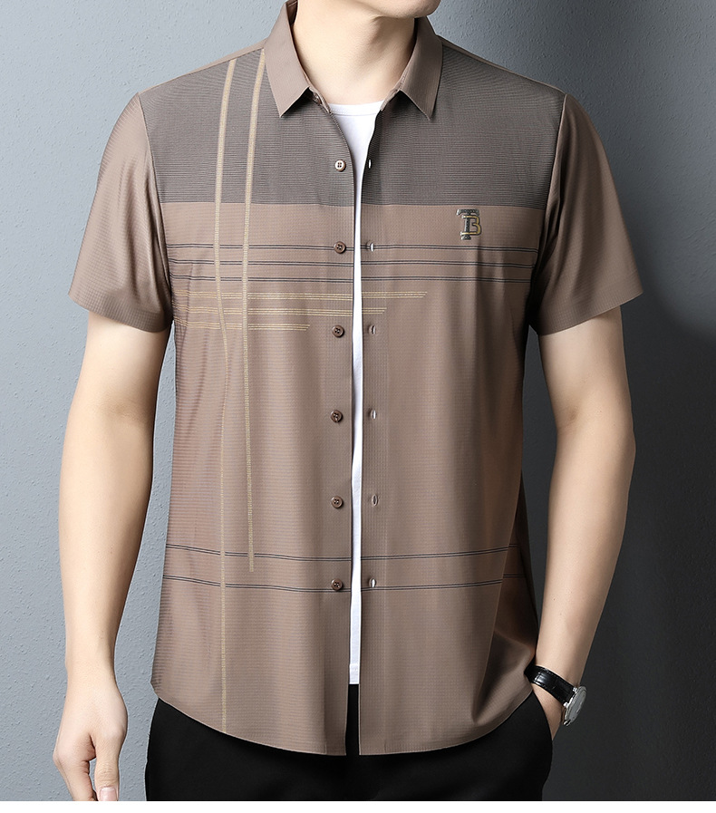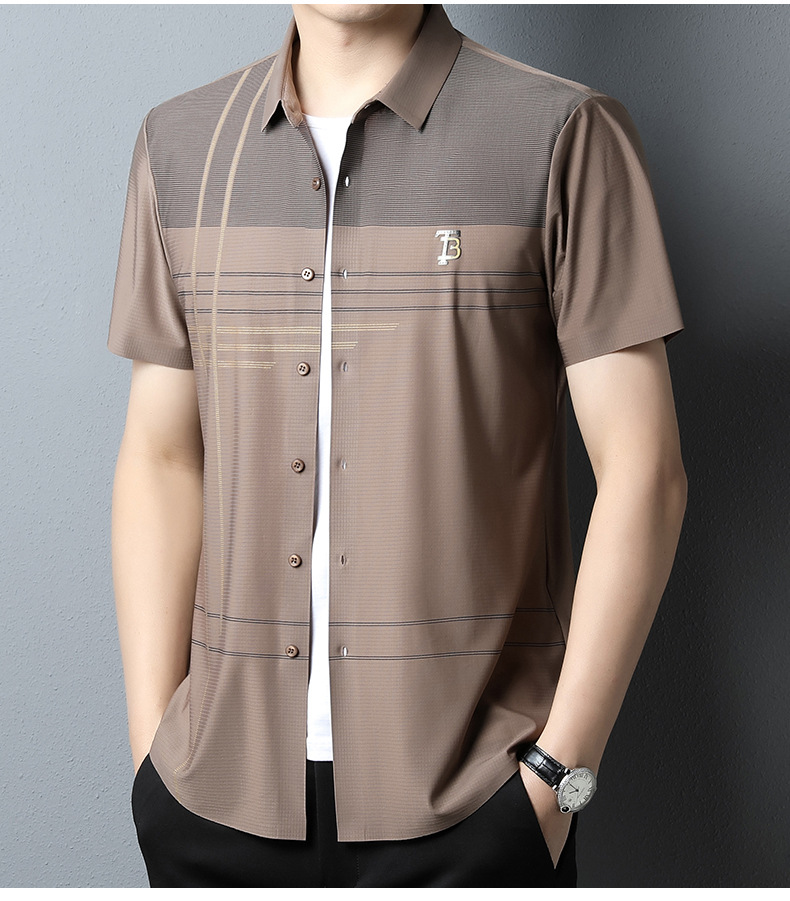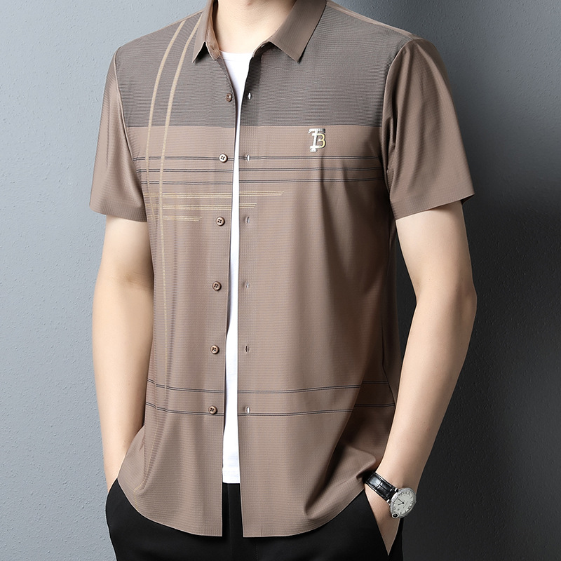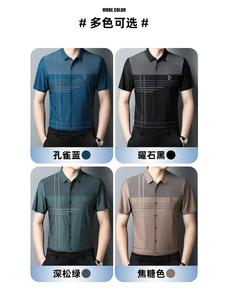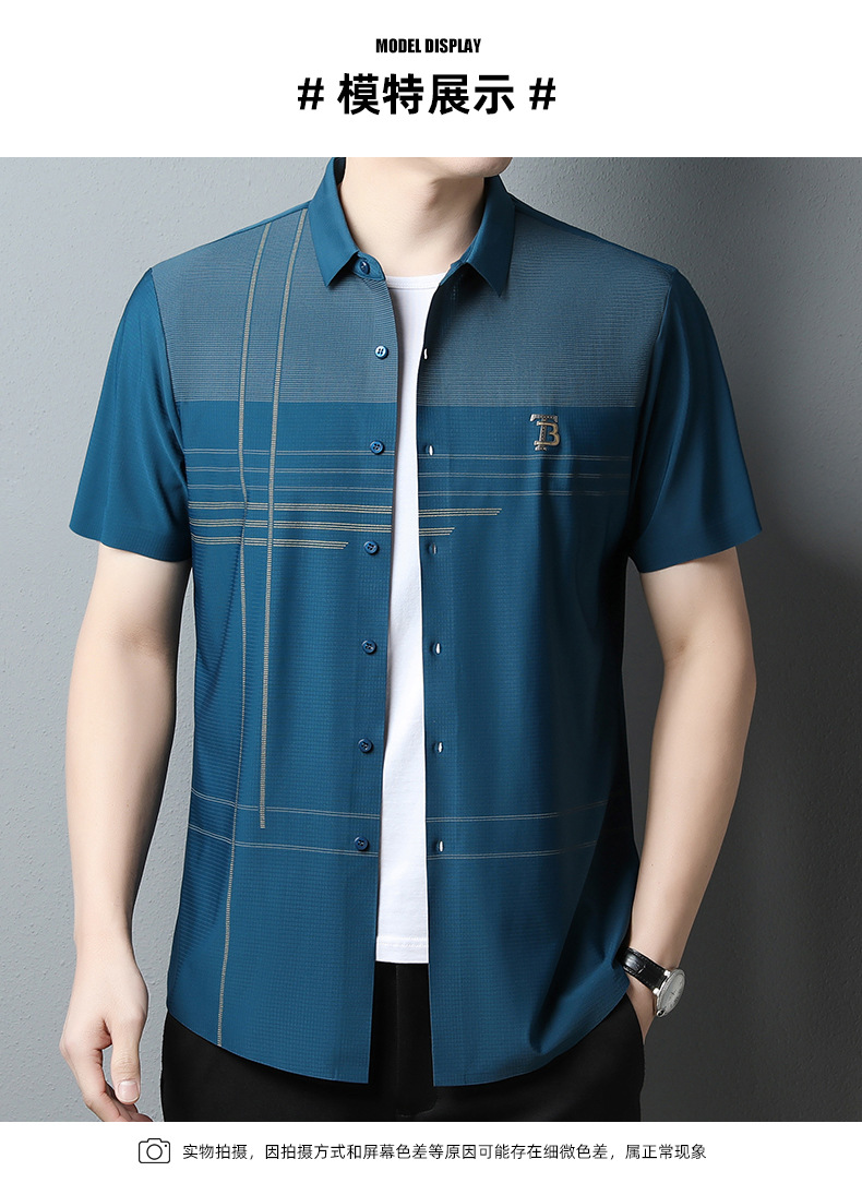 여름 남자 반팔 셔츠 아이스 실크 경량 느슨한 탄성 중년 및 노인 아빠의 비즈니스 캐주얼 셔츠스토어 가기
