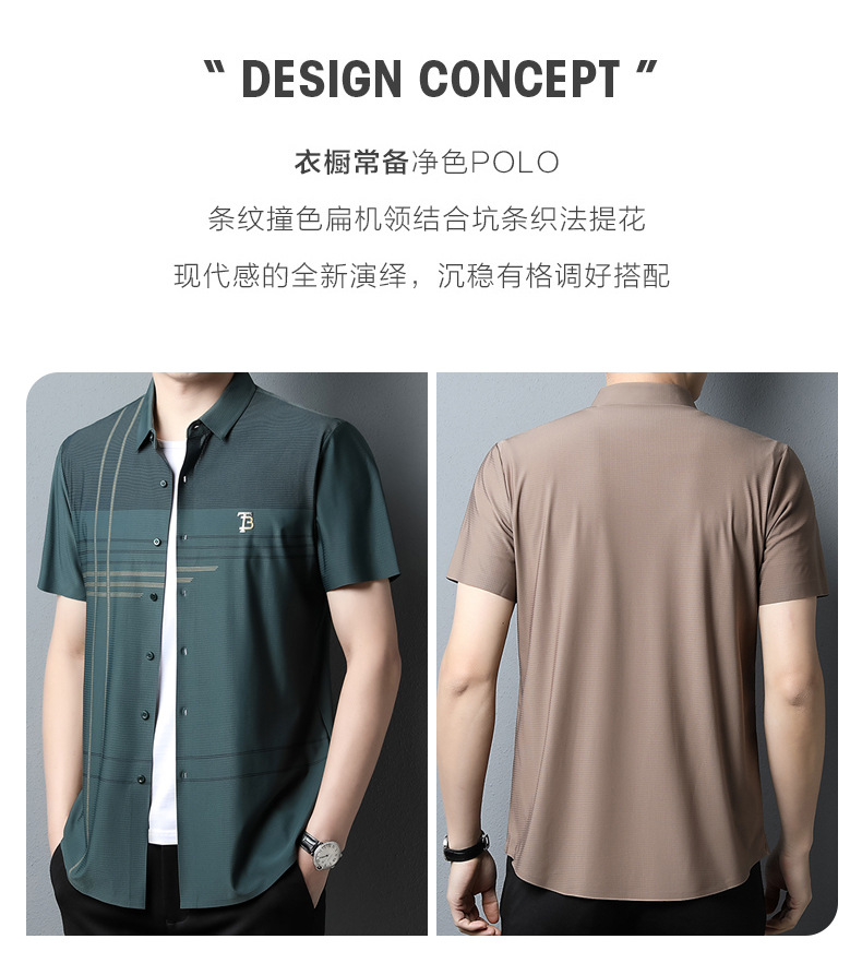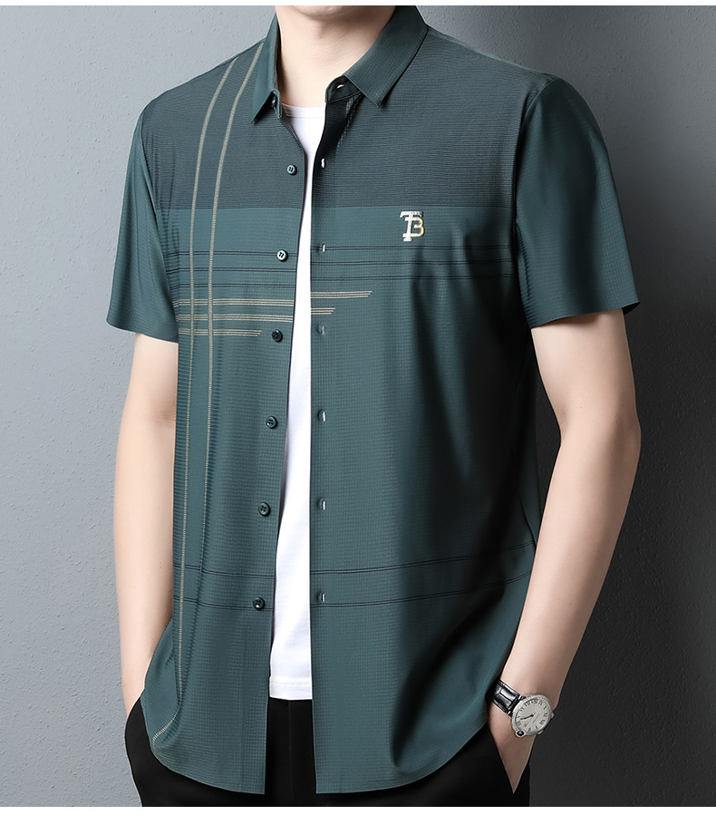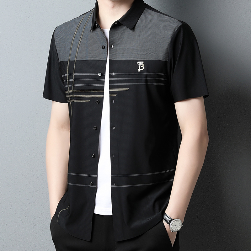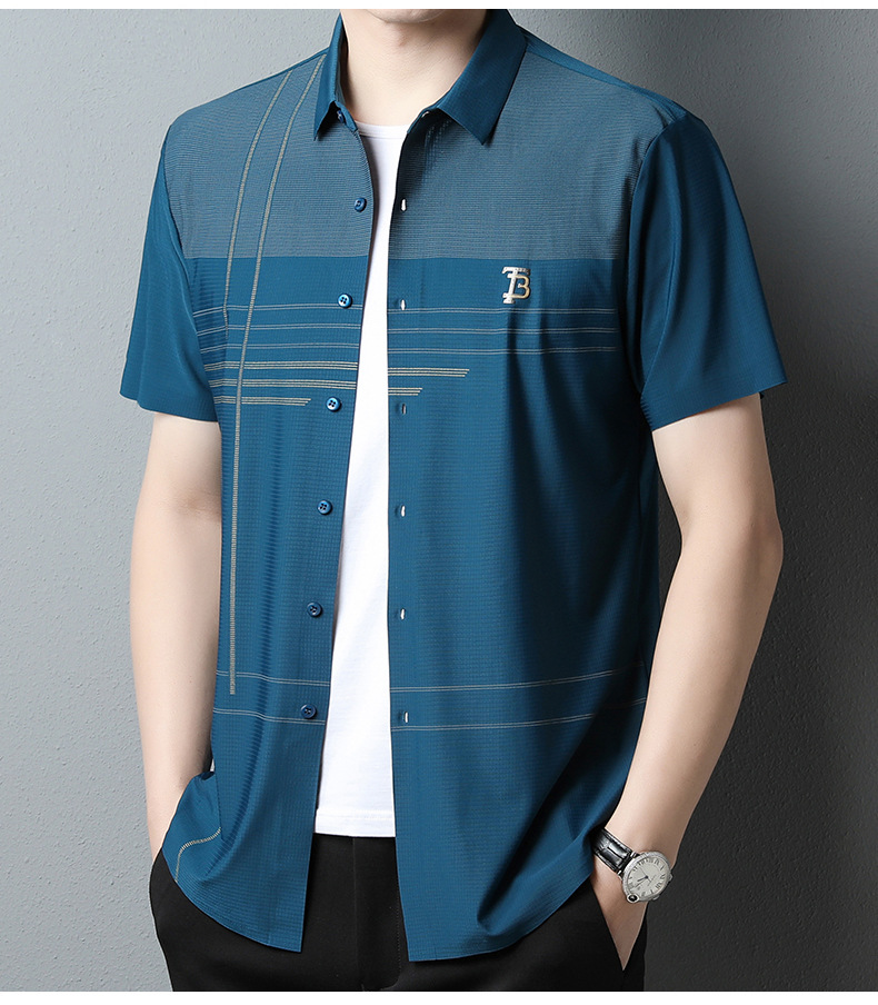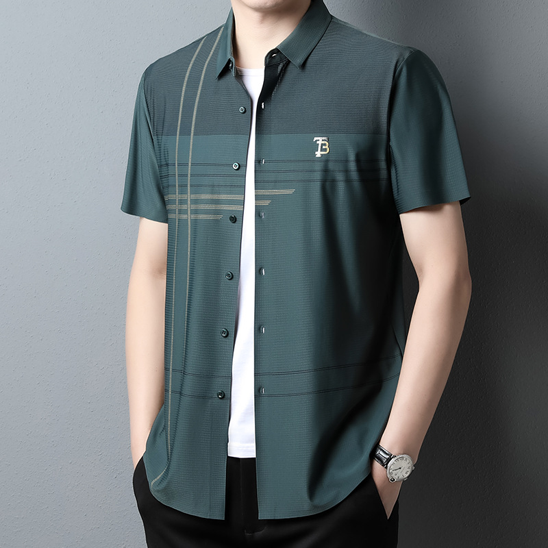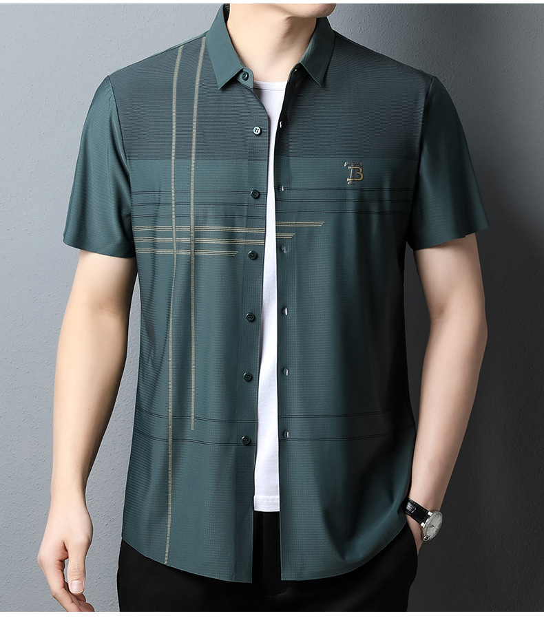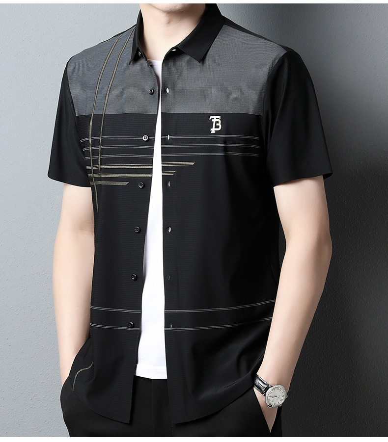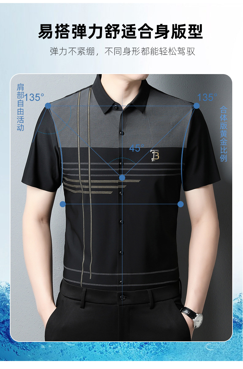 여름 남자 반팔 셔츠 아이스 실크 경량 느슨한 탄성 중년 및 노인 아빠의 비즈니스 캐주얼 셔츠스토어 가기