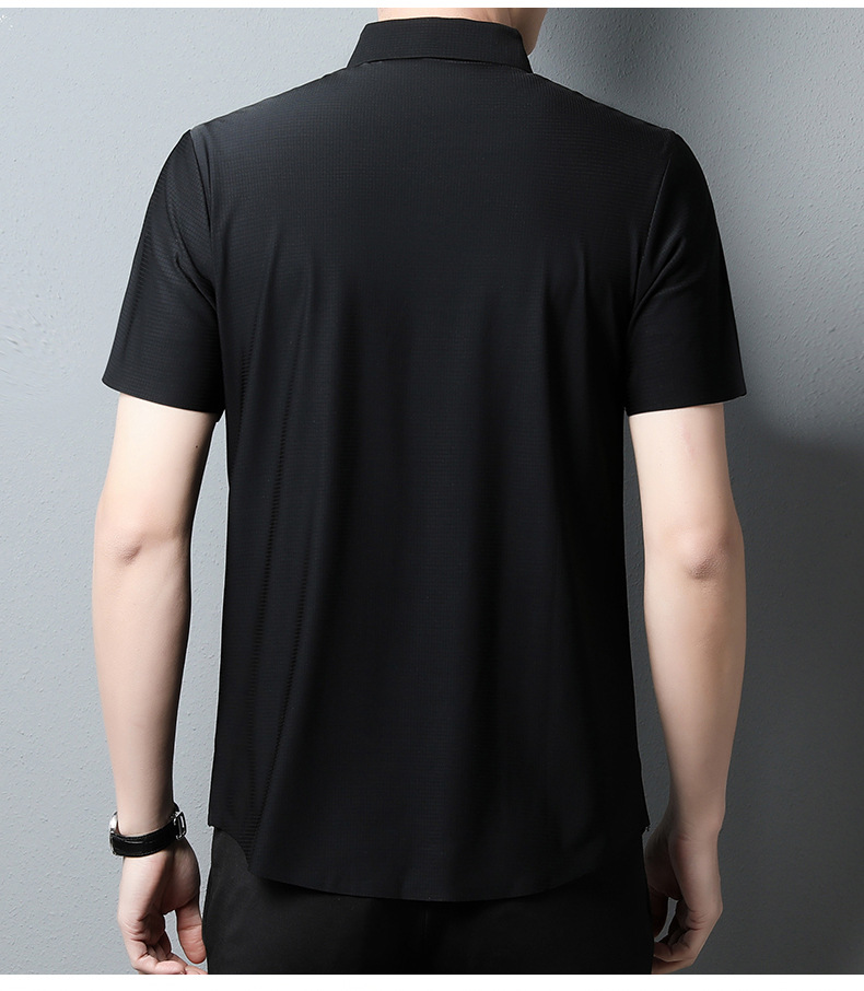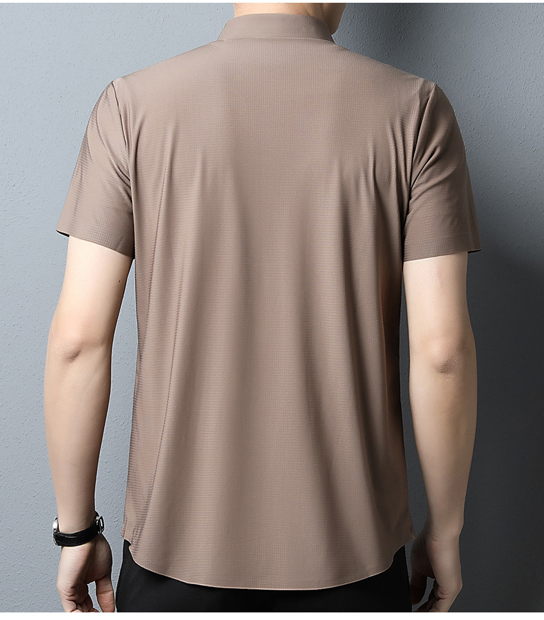 여름 남자 반팔 셔츠 아이스 실크 경량 느슨한 탄성 중년 및 노인 아빠의 비즈니스 캐주얼 셔츠