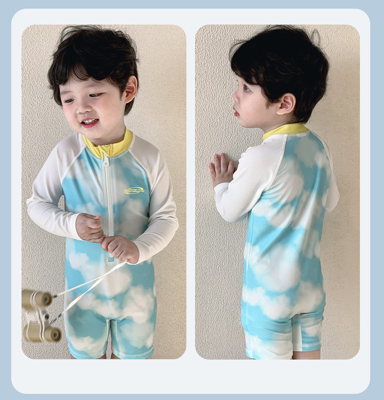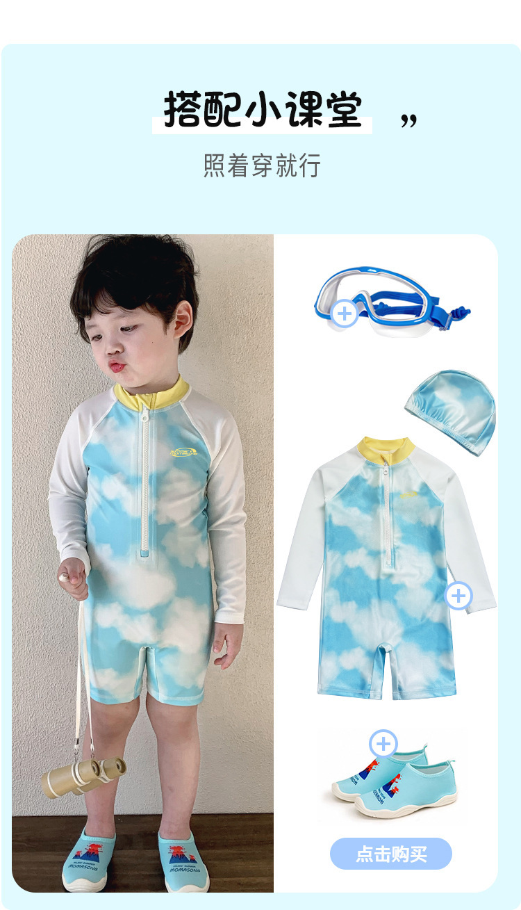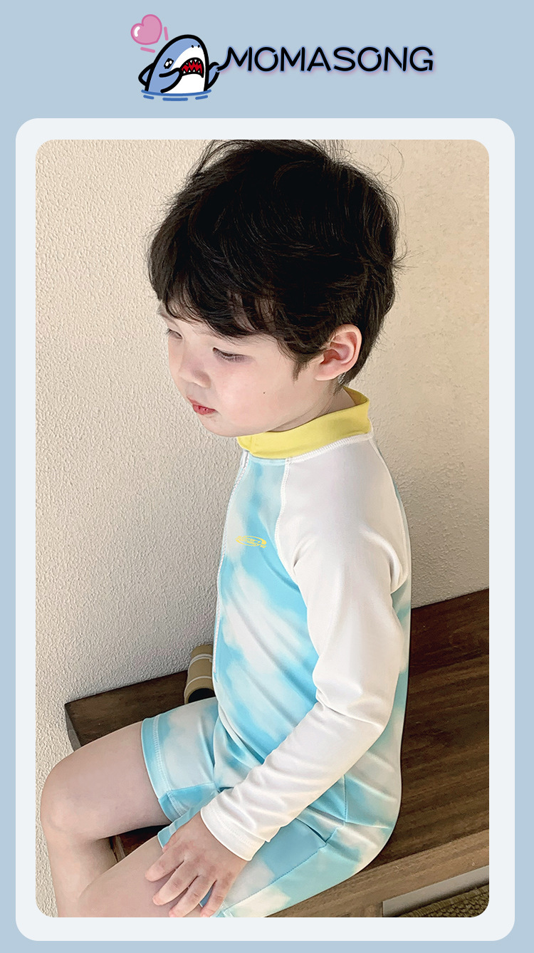 Momasong 소년 원피스 수영복 ins 항염소 긴팔 자외선 차단제 속건성 해변 수영복 중년 어린이 수영복스토어 가기