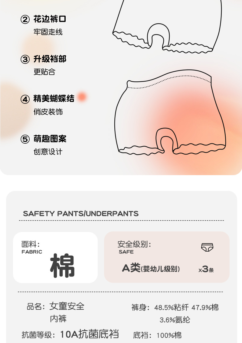 • 여아용 안전바지 (노란색 2개, 흰색 1개)