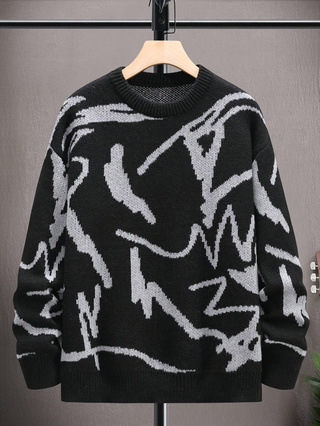 Temu Xiyin 아마존 유행 스웨터 남자의 가을과 겨울 느슨한 크루 넥 홍콩 스타일 니트 셔츠 긴 소매 후드스토어 가기