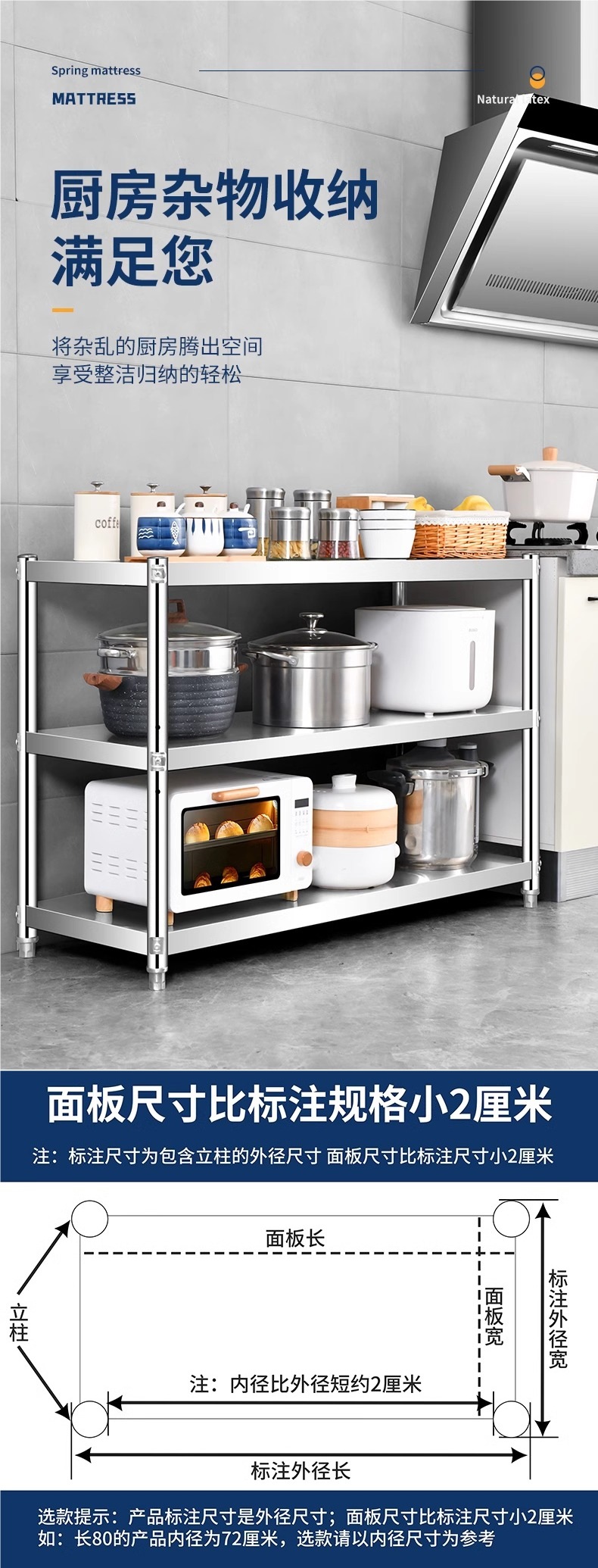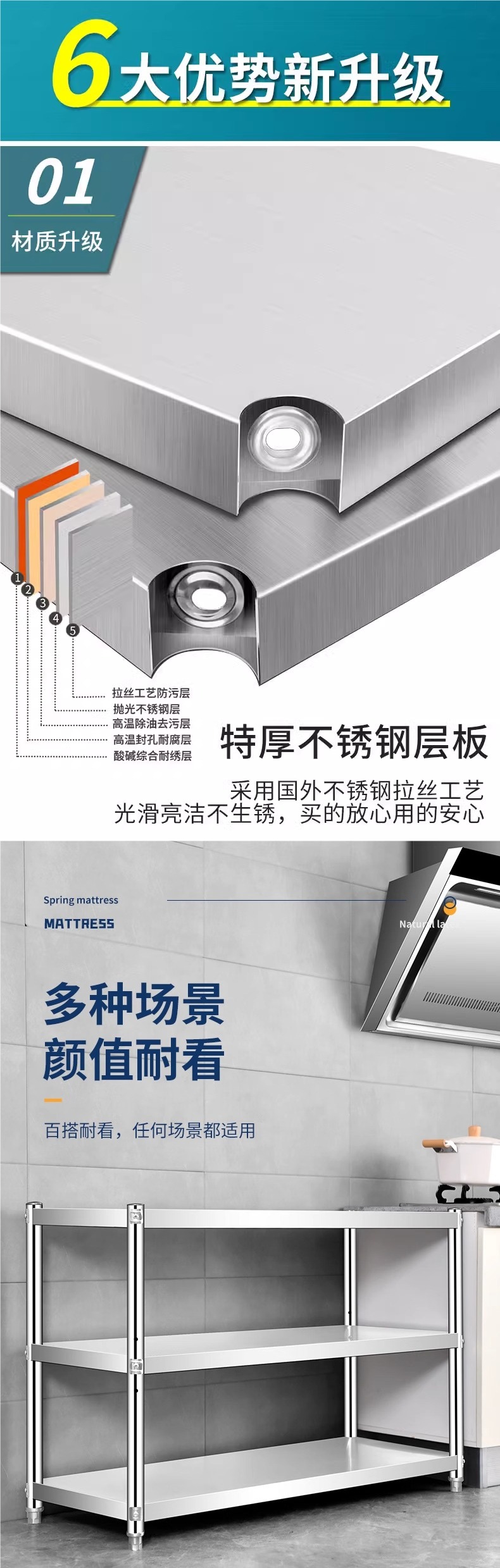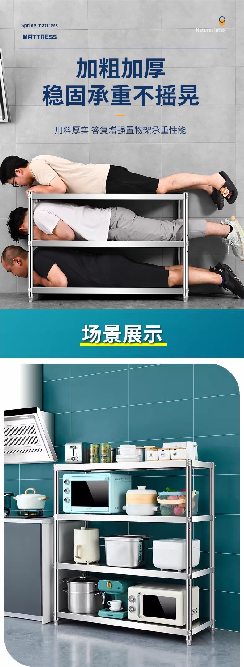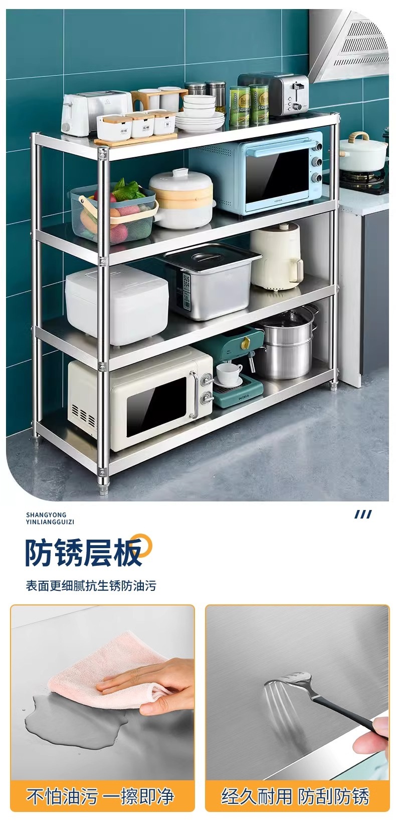 스테인레스 스틸 주방 보관 랙 다층 바닥 다기능 선반 저장 워크 벤치 테이블 가정용 스토리지 랙