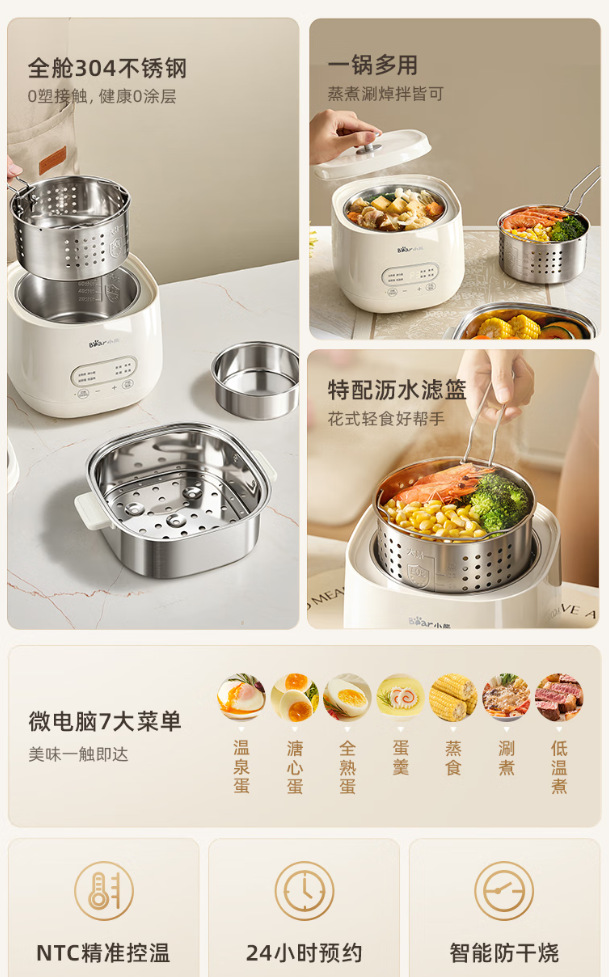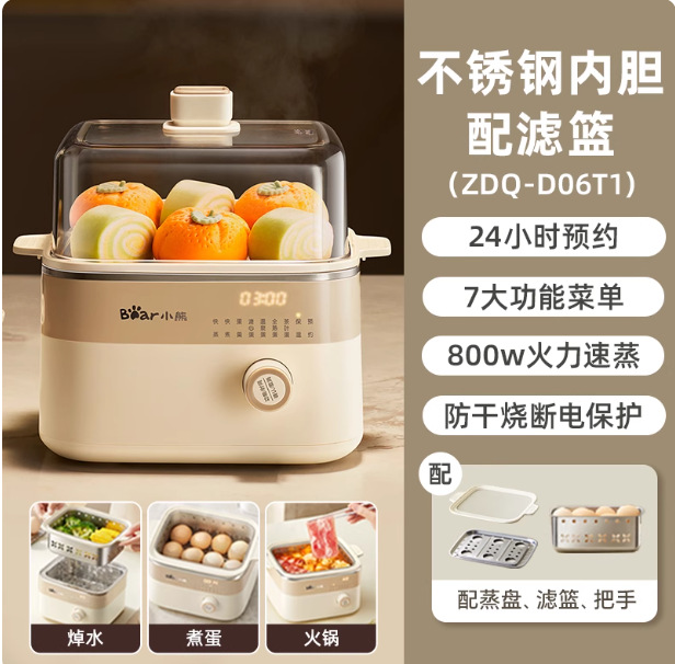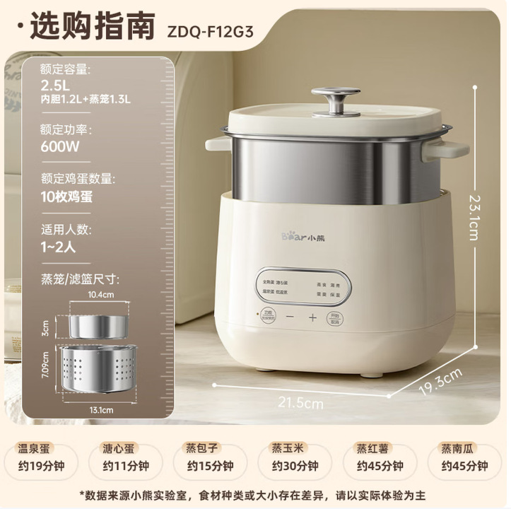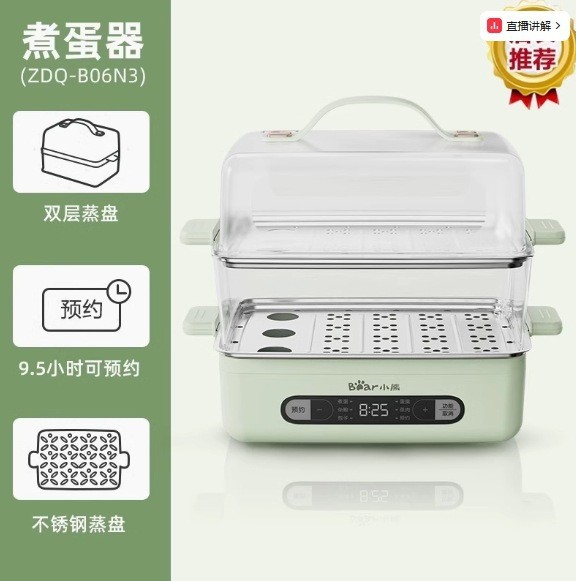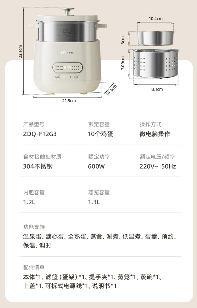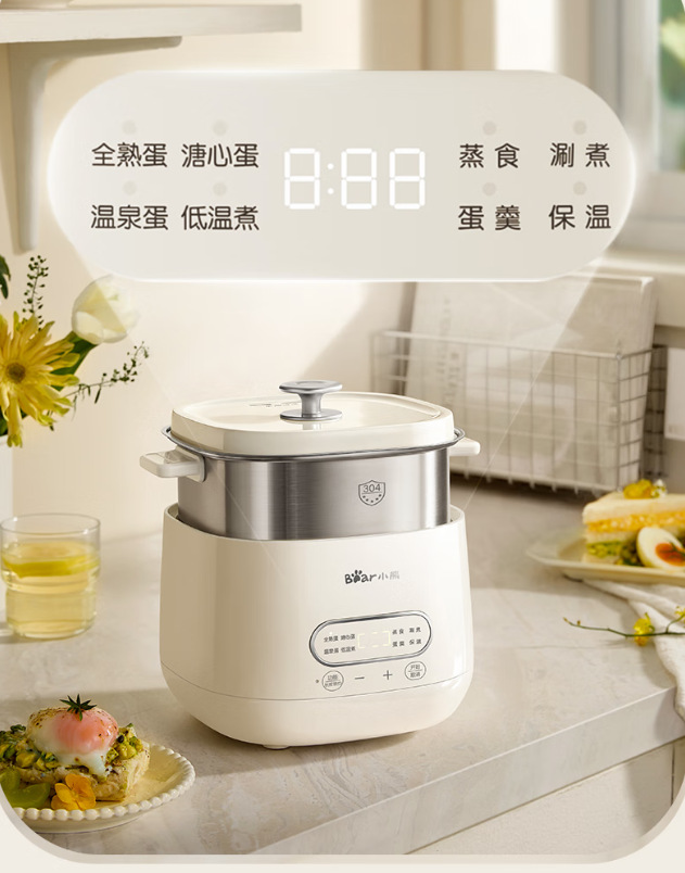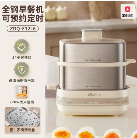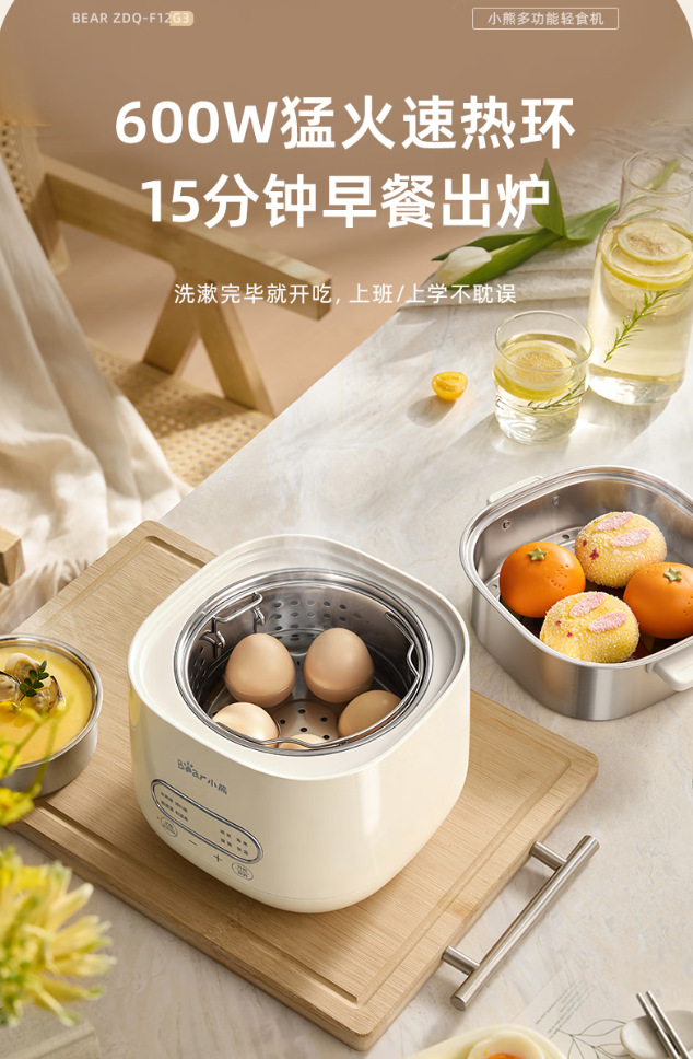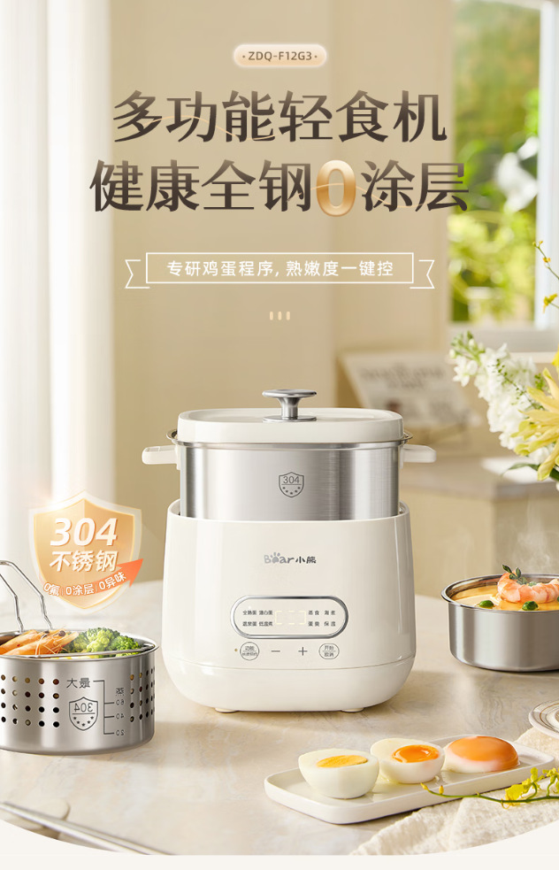 작은 곰 계란 찜기 가정용 이중 스테인리스 계란 찜기 타이머 기능 다기능 일체형 ZDQ-F12G3스토어 가기