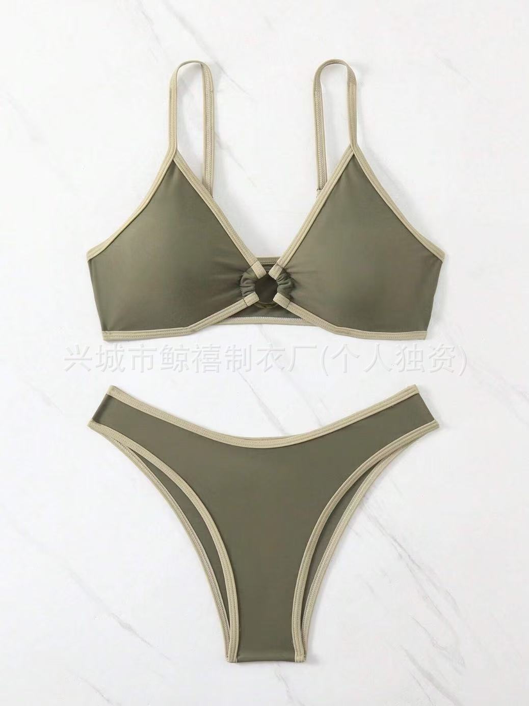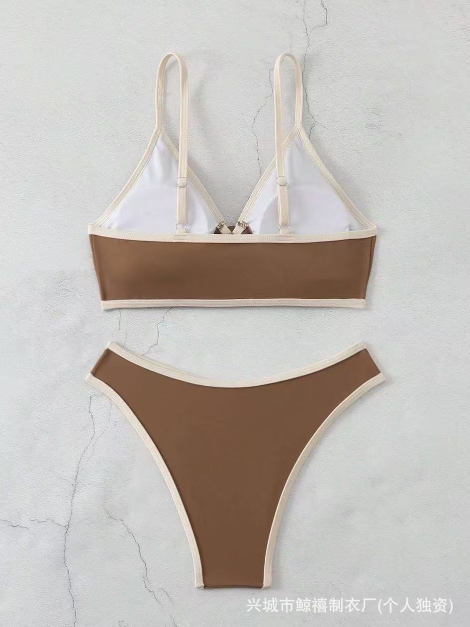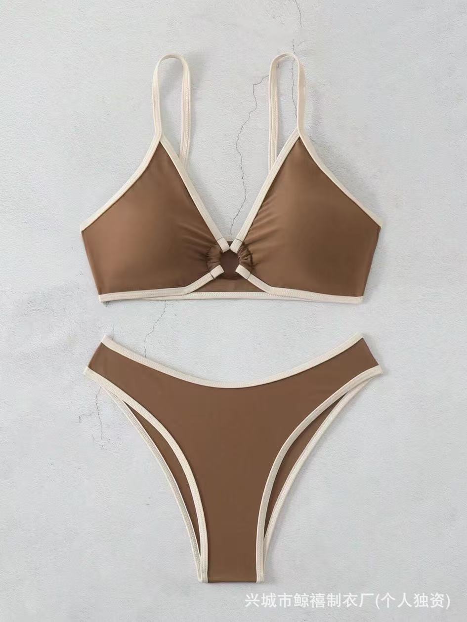 2025 새로운 도착 비키니 아마존 컬러 블록 목에 매달린 섹시한 수영복 여성 비치 수영복 비키니 세트