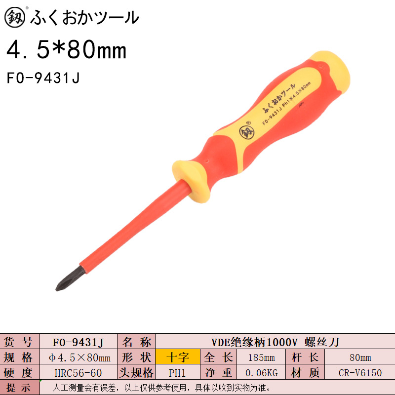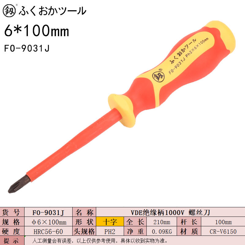 후쿠오카 절연 내전압 핸들 드라이버 십자형 전기 수리 도구 가정용 내전압 1000V 핸들스토어 가기