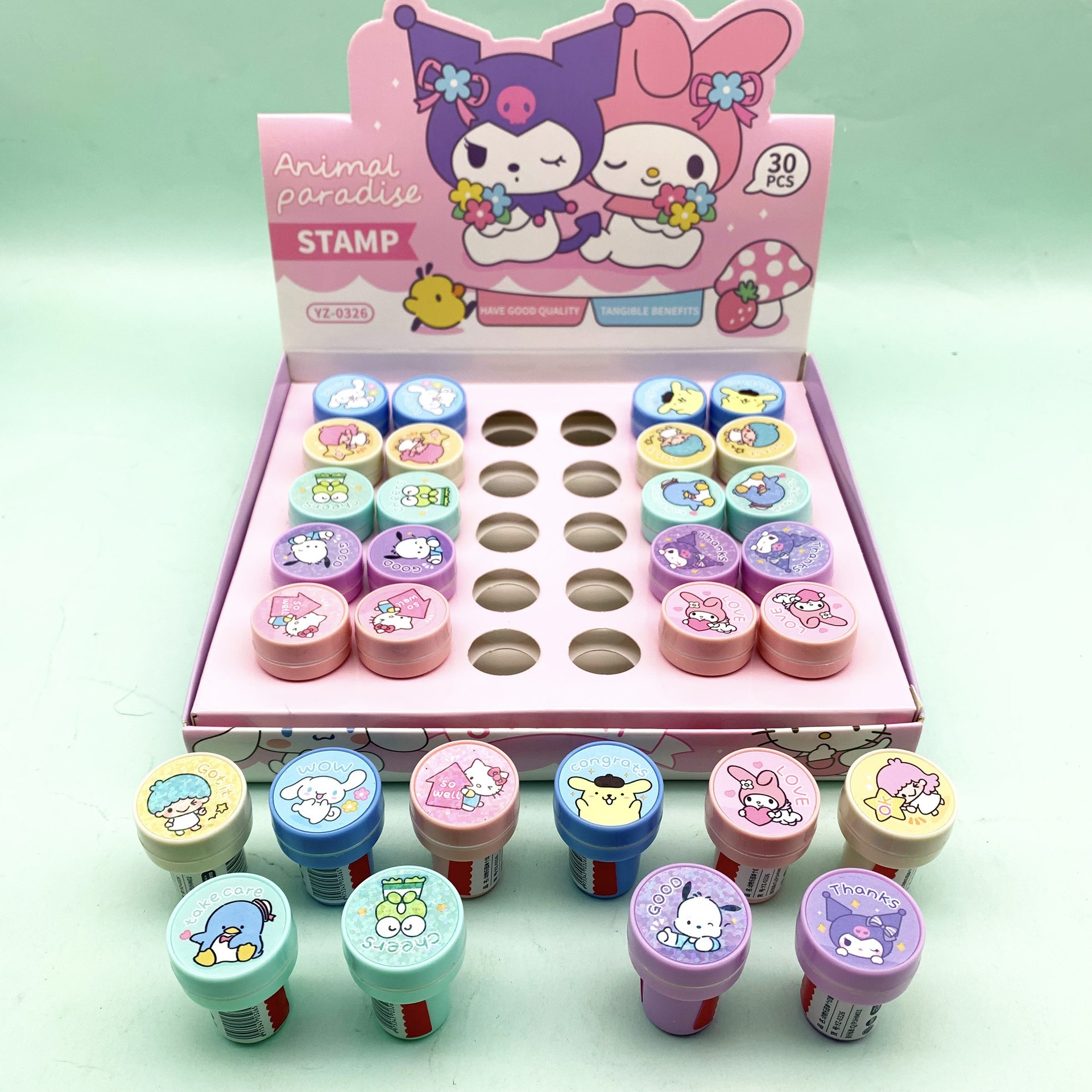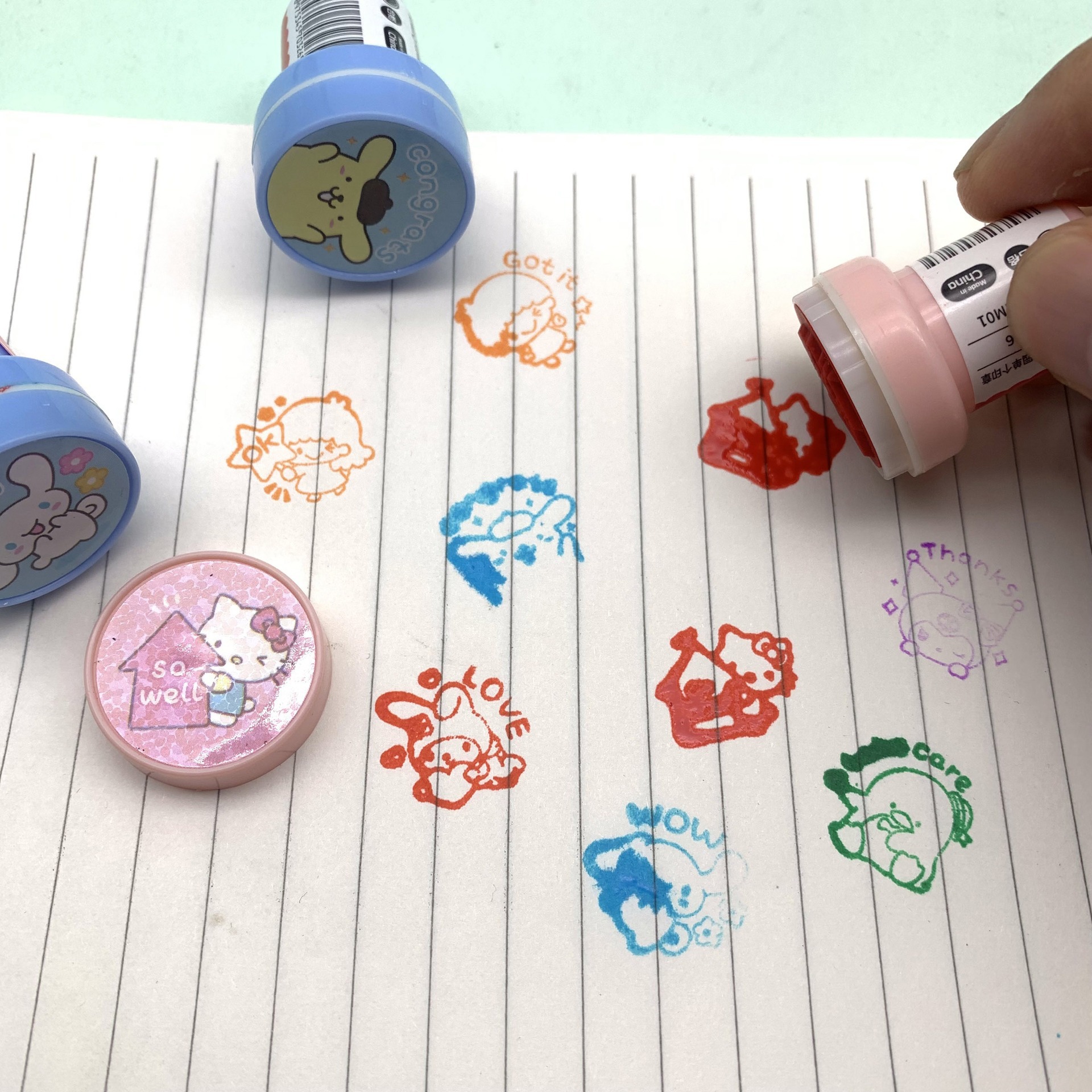 산리오 어린이 보상 스탬프 유치원 격려 및 칭찬 스탬프 교사 교정 및 평가 문구 선명한 글씨 스탬프스토어 가기