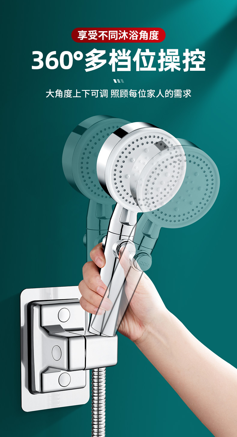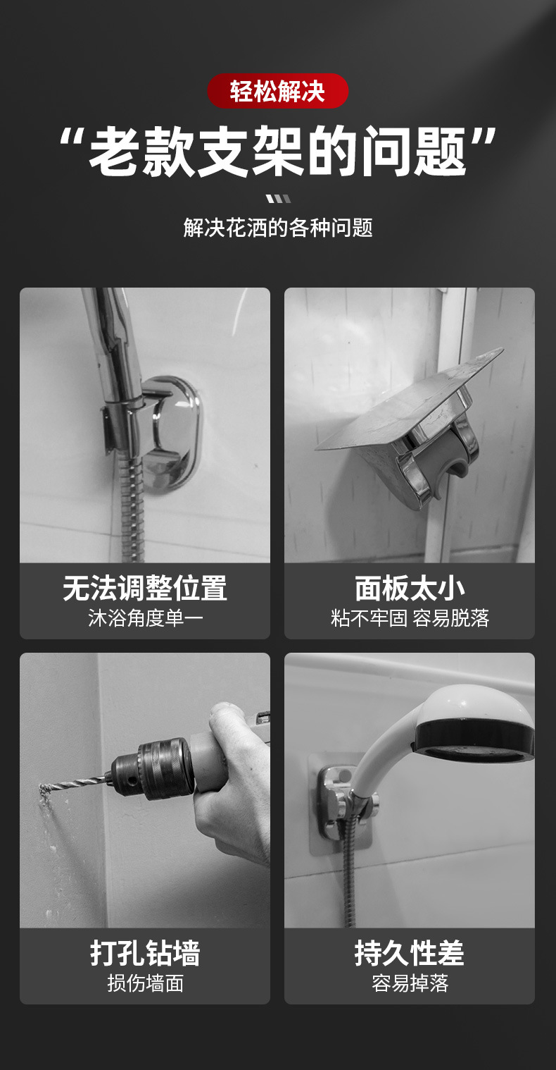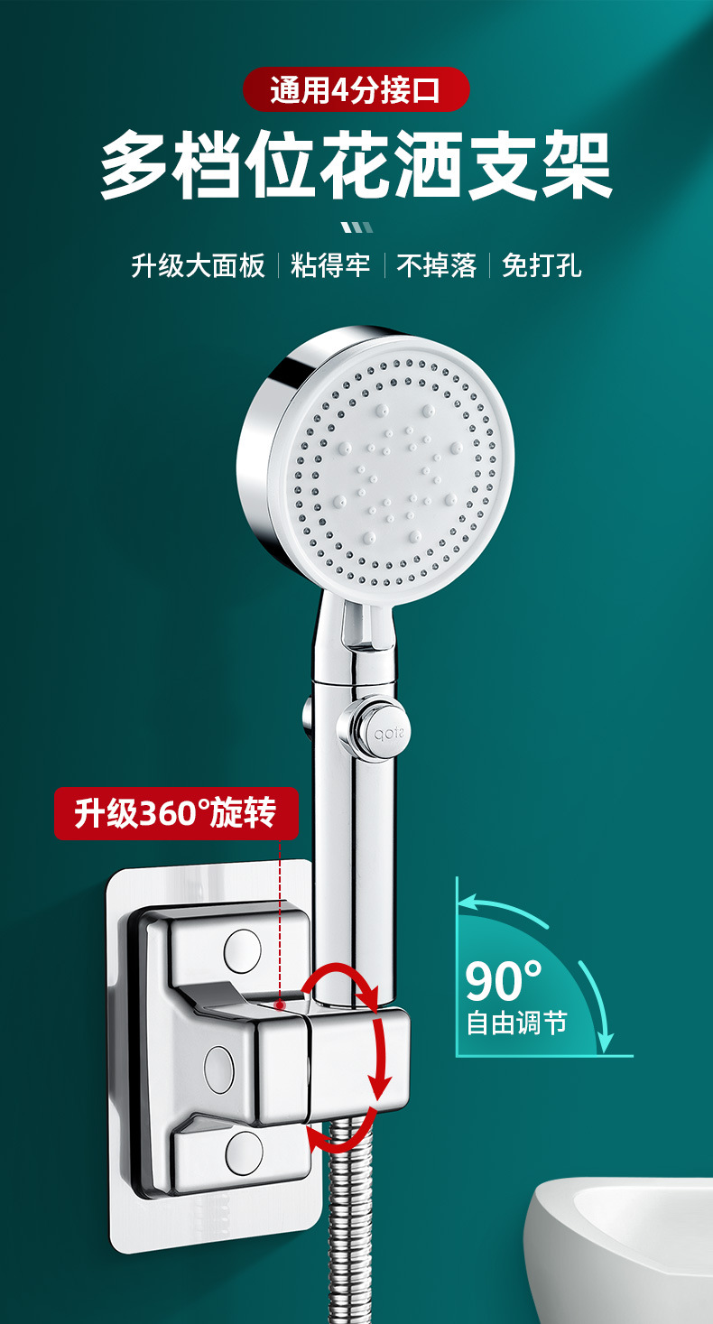 무타공 샤워기 거치대, 샤워헤드 고정기, 욕실 샤워기 걸이, 조절 가능한 샤워기 벽걸이 받침대