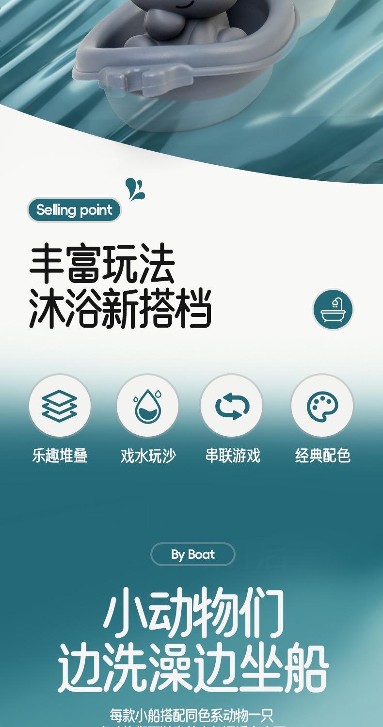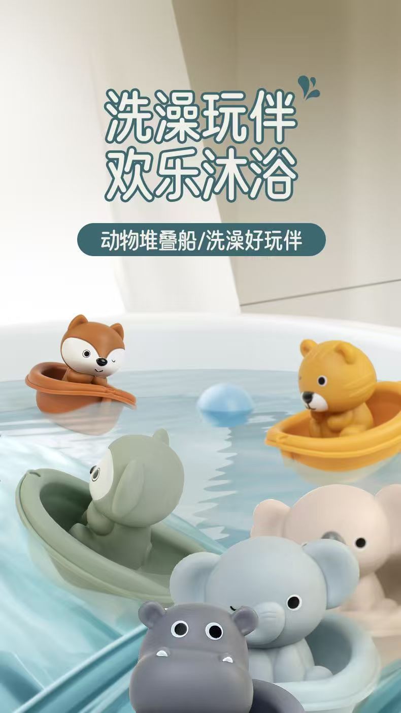 무료 배송 어린이 욕실 쌓을 수있는 부동 보트 장난감 아기 목욕 물 장난감 스태킹 보트 동물 손 인형 장난감