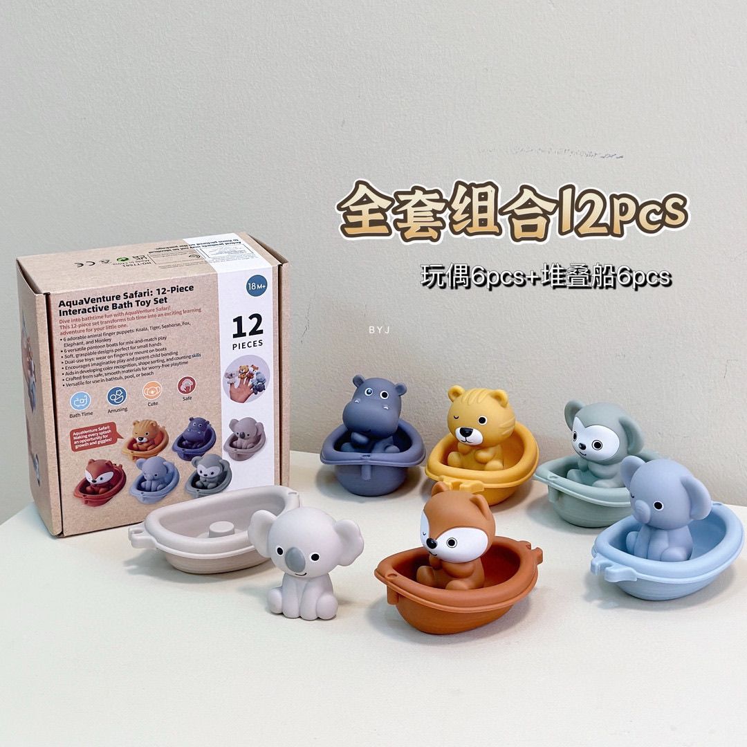 무료 배송 어린이 욕실 쌓을 수있는 부동 보트 장난감 아기 목욕 물 장난감 스태킹 보트 동물 손 인형 장난감스토어 가기