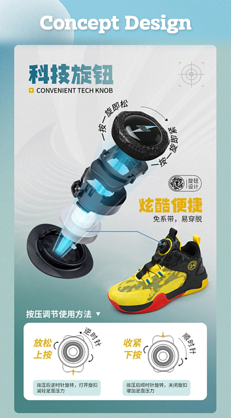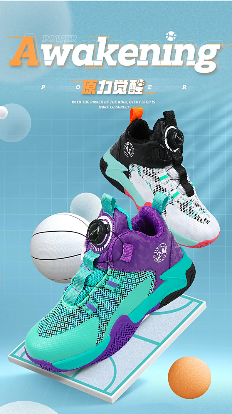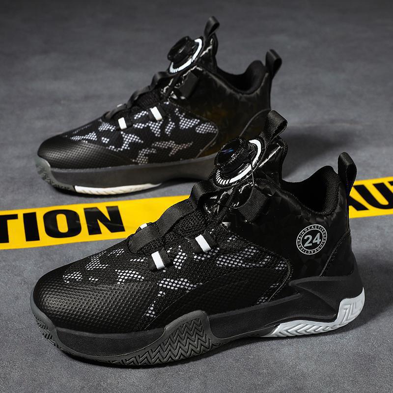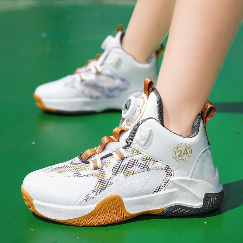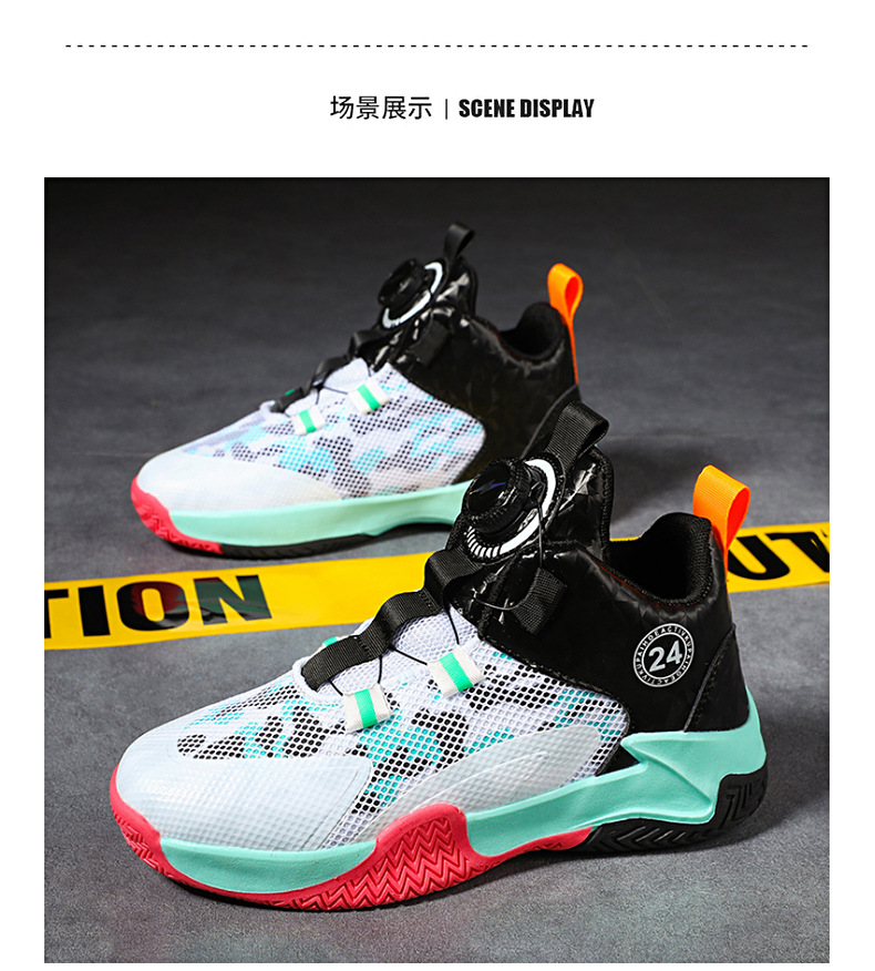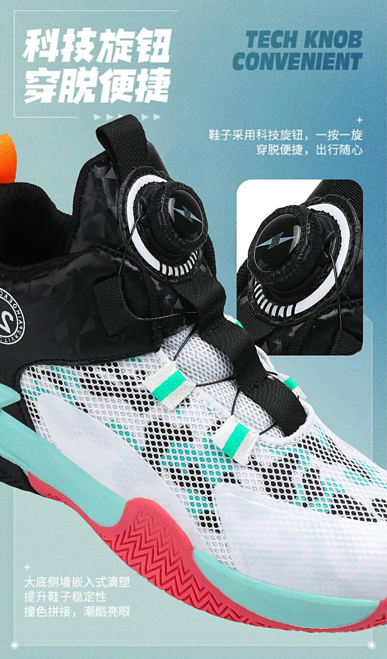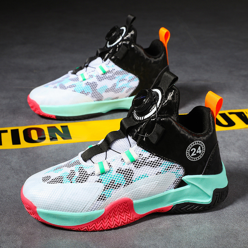 끈이없는 어린이 농구 신발 2025 봄 새로운 회전 버튼 소년 메쉬 스포츠 신발 소년 신발