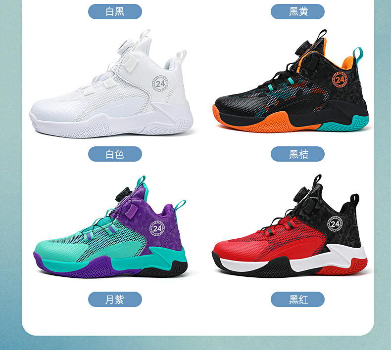 끈이없는 어린이 농구 신발 2025 봄 새로운 회전 버튼 소년 메쉬 스포츠 신발 소년 신발스토어 가기