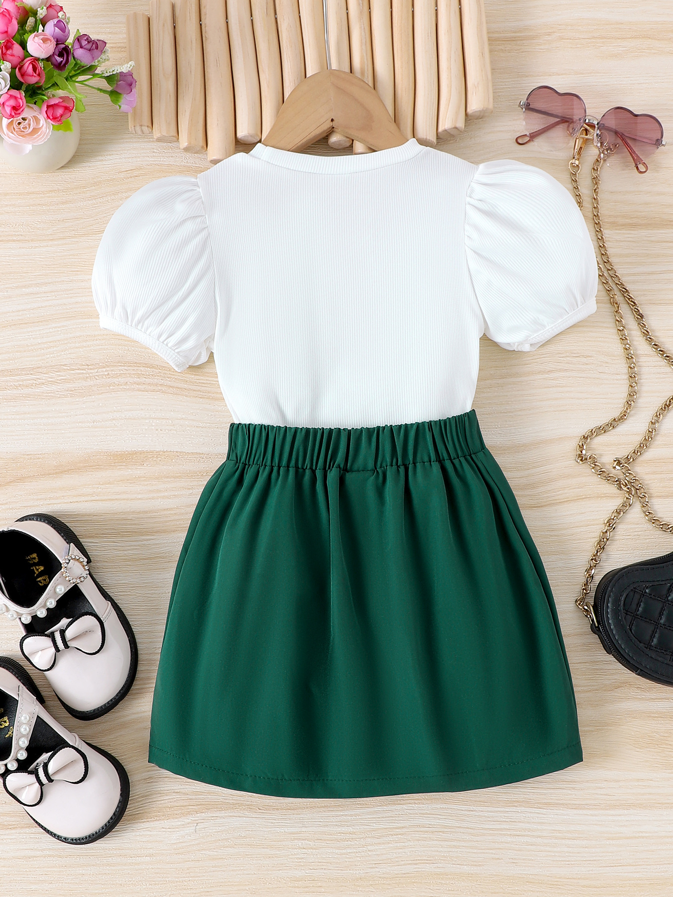 25 대외 무역 국경 간 유럽과 미국 여름 소녀 세트 중소형 어린이 화이트 버블 슬리브 짧은 소매 치마 투피스 세트