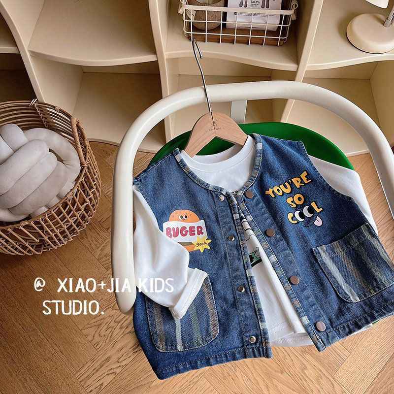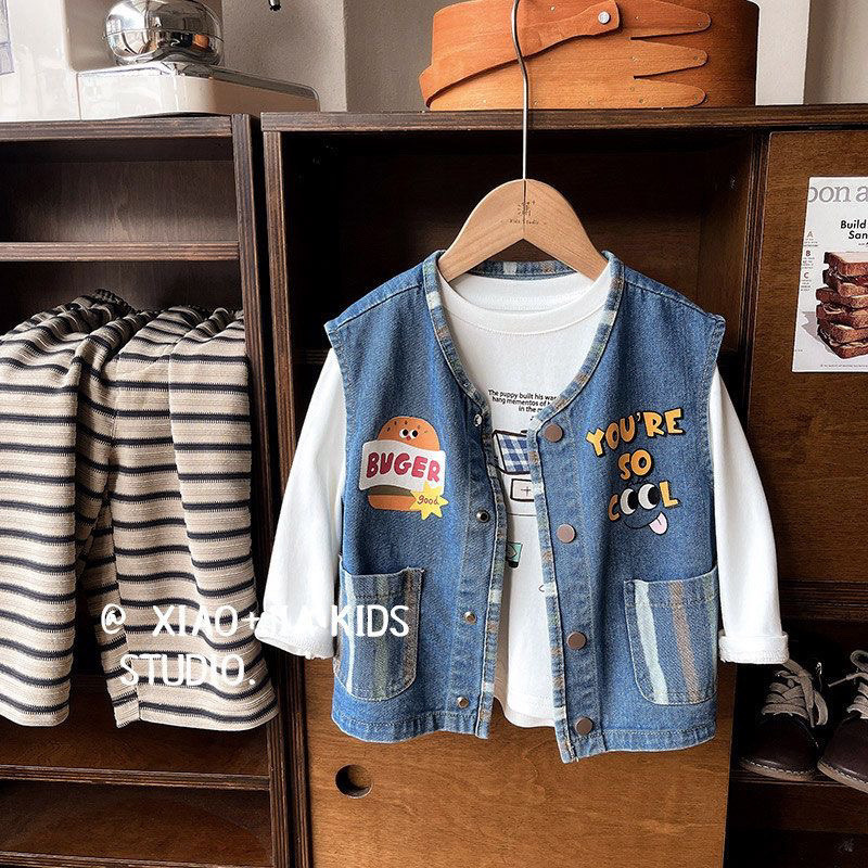 데님 베이비 조끼 새로운 어린이 2025 다목적 외국 스타일 소녀 민소매 봄, 가을 캐미솔스토어 가기