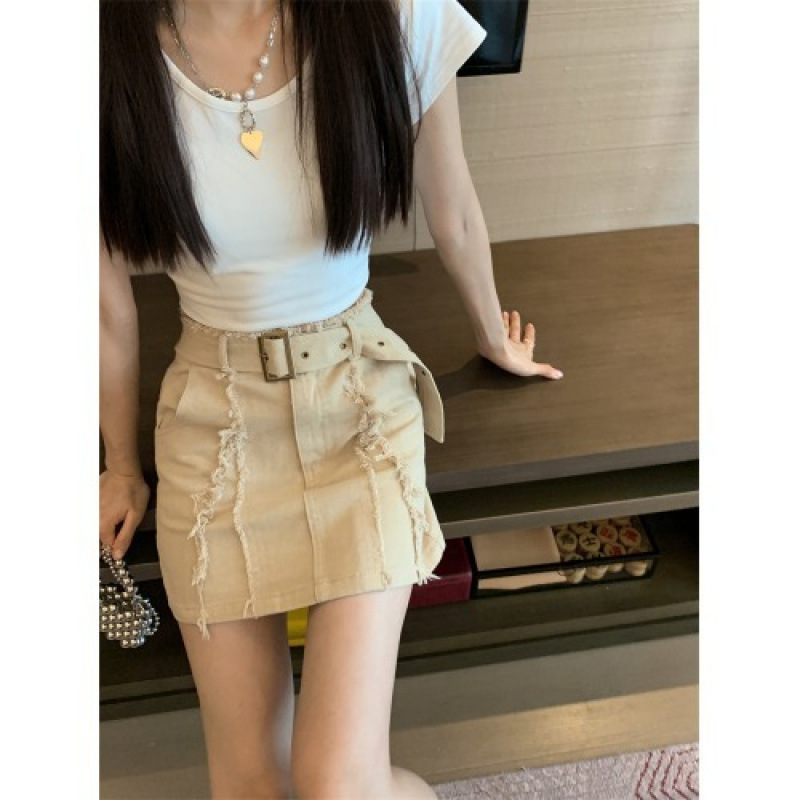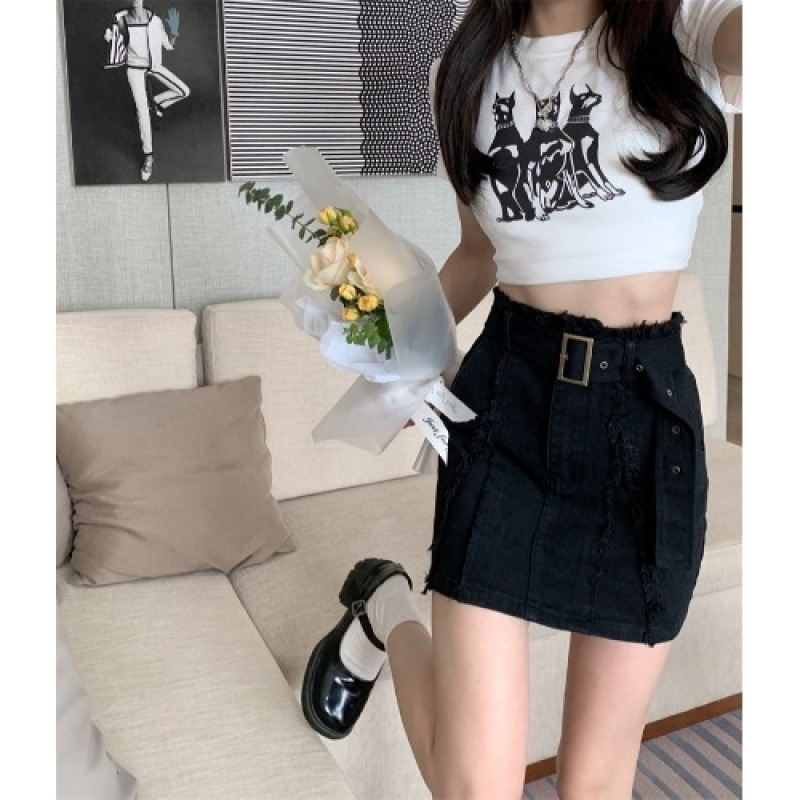 아메리칸 스타일 데님 스커트 여자 2025 여름 새로운 스타일 뜨거운 소녀 높은 허리 블랙 A 라인 스커트 공 트렌디스토어 가기