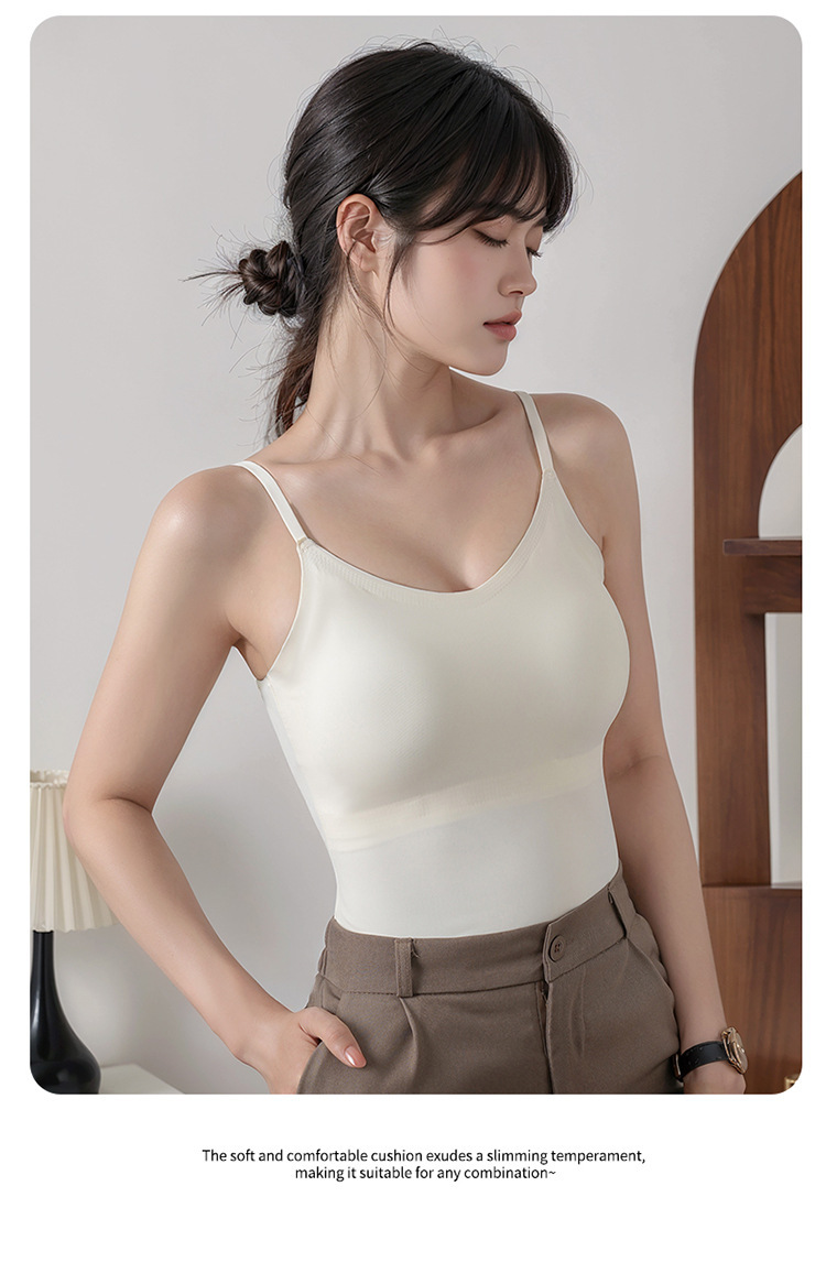 Traceless Ice Silk Air Cup Camisole 여자 고정 컵 푸시 업 Paramilis Beauty Back Inner Lap Outer Wear Base Top스토어 가기
