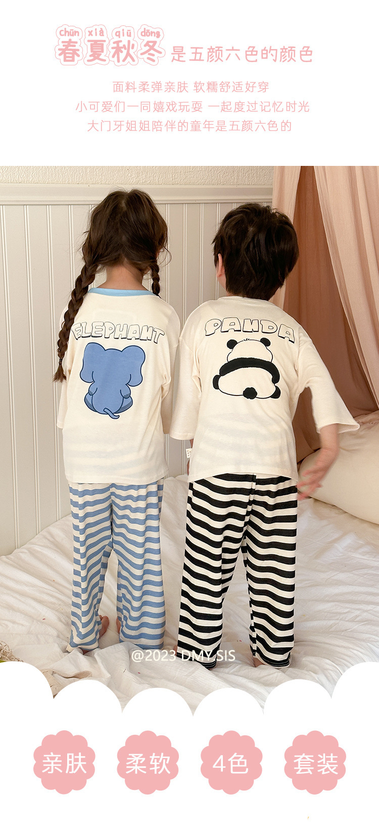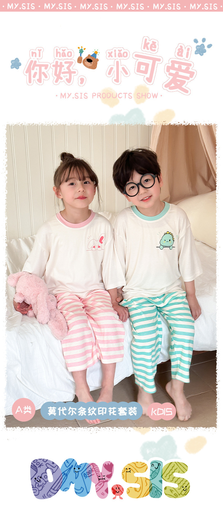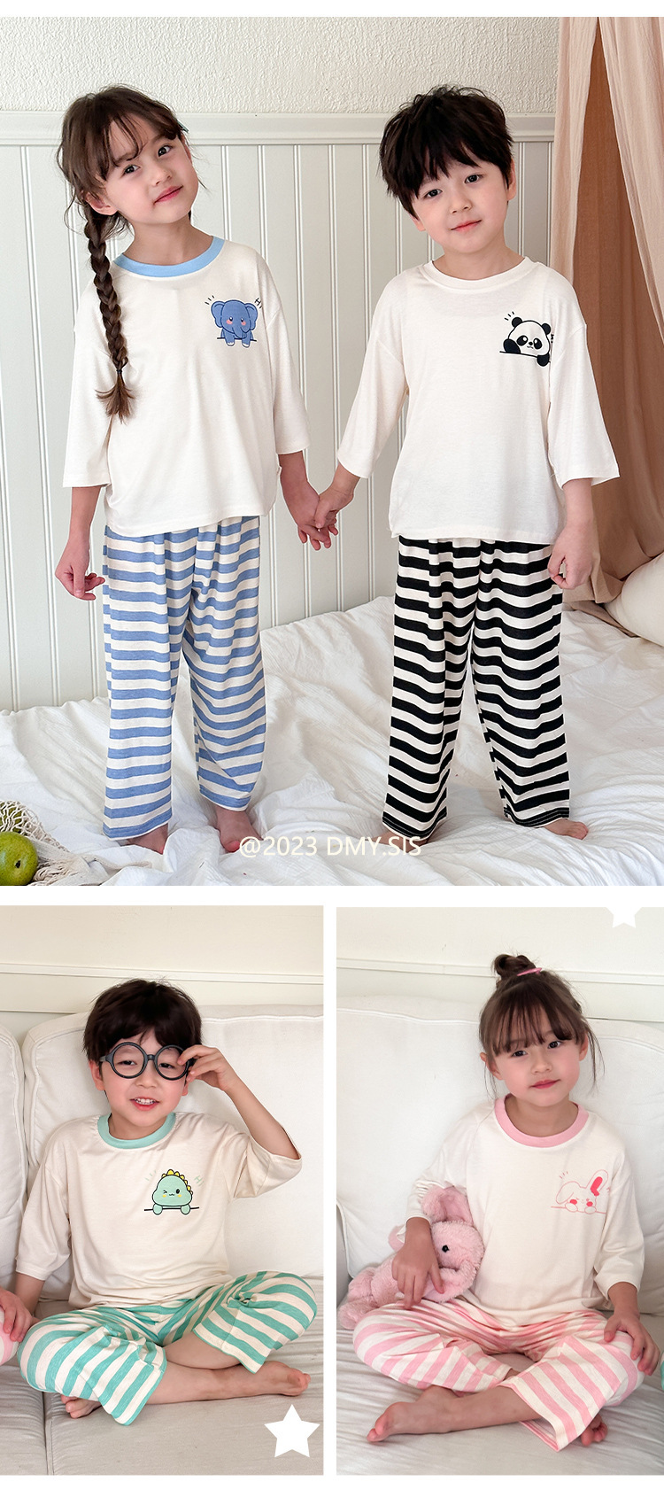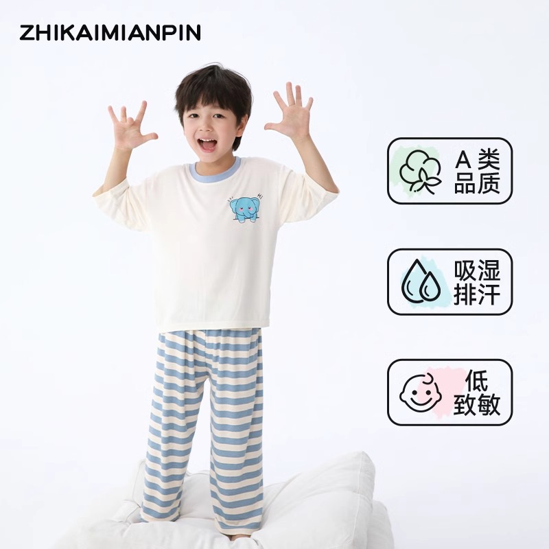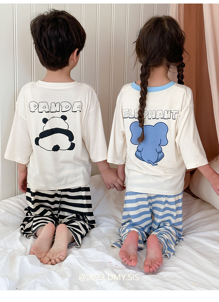 어린이 홈웨어 세트 여름 모달 얇은 소재 남아 여아 잠옷 아기 봄 가을 스타일 흡습 발한스토어 가기