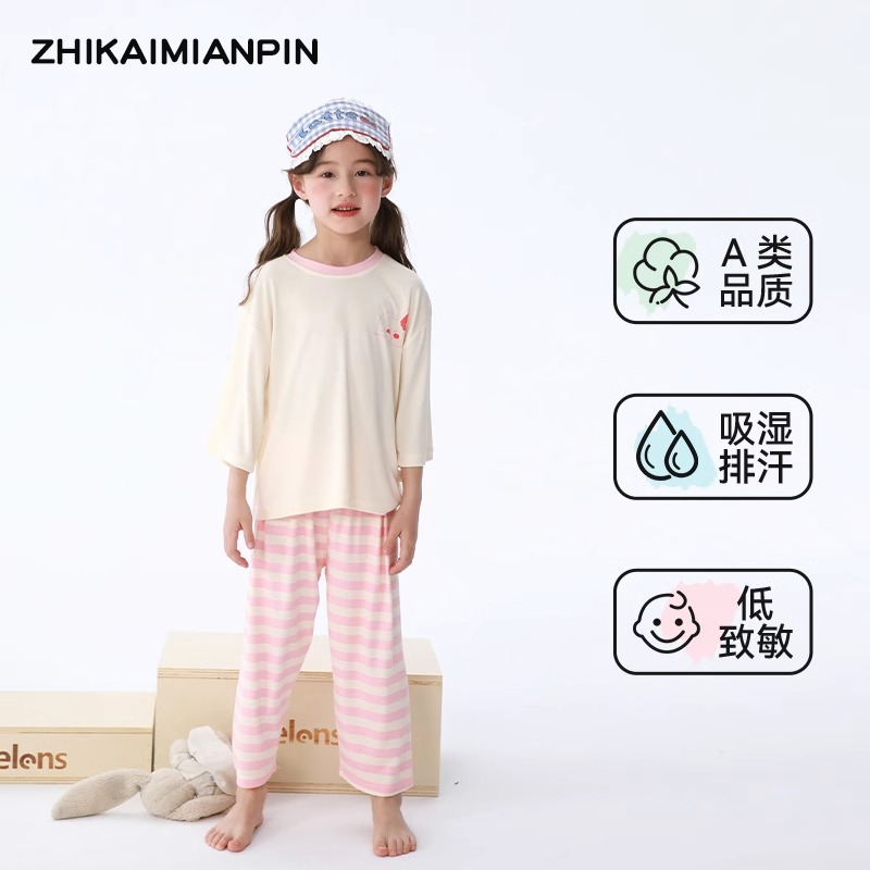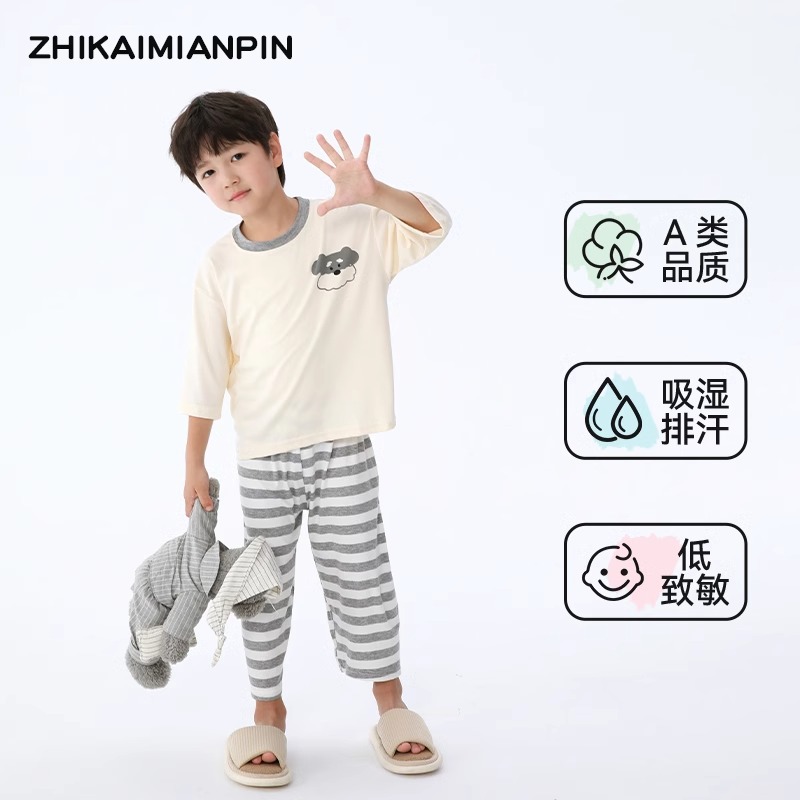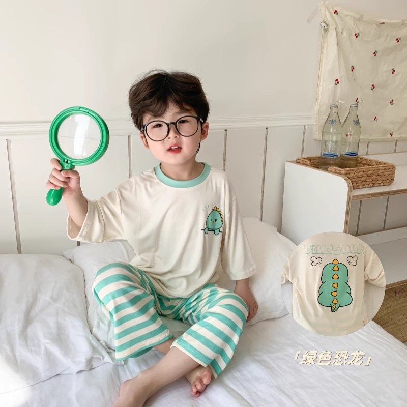 어린이 홈웨어 세트 여름 모달 얇은 소재 남아 여아 잠옷 아기 봄 가을 스타일 흡습 발한