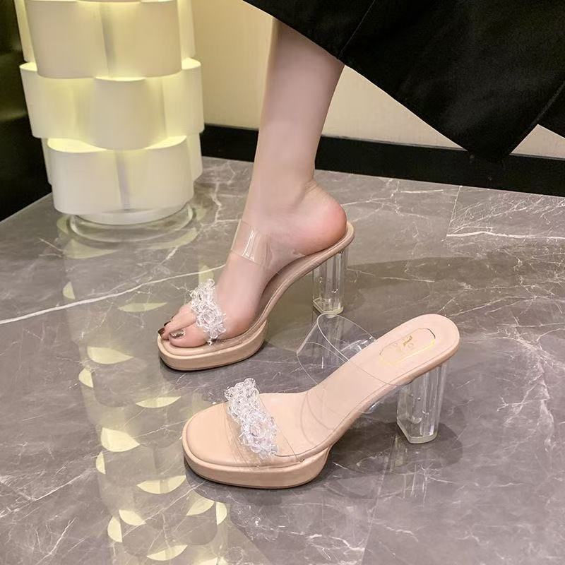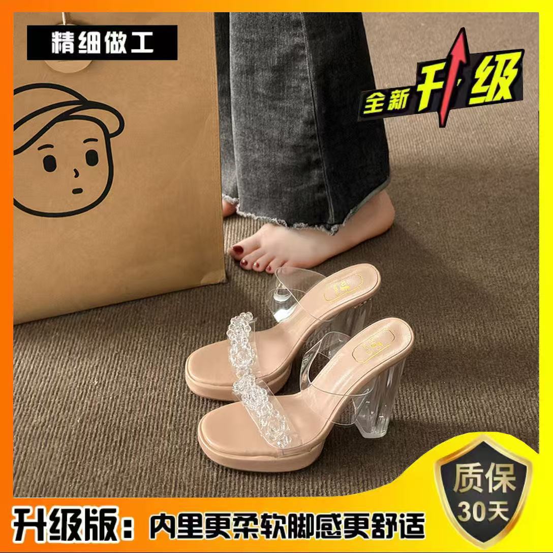 2025년 인터넷 연예인 신작 틈새 디자인 스커트와 매치하기 좋은 여성 하이힐 샌들, 우아한 슬리퍼 느낌스토어 가기