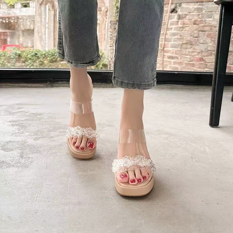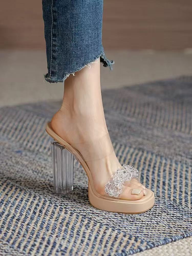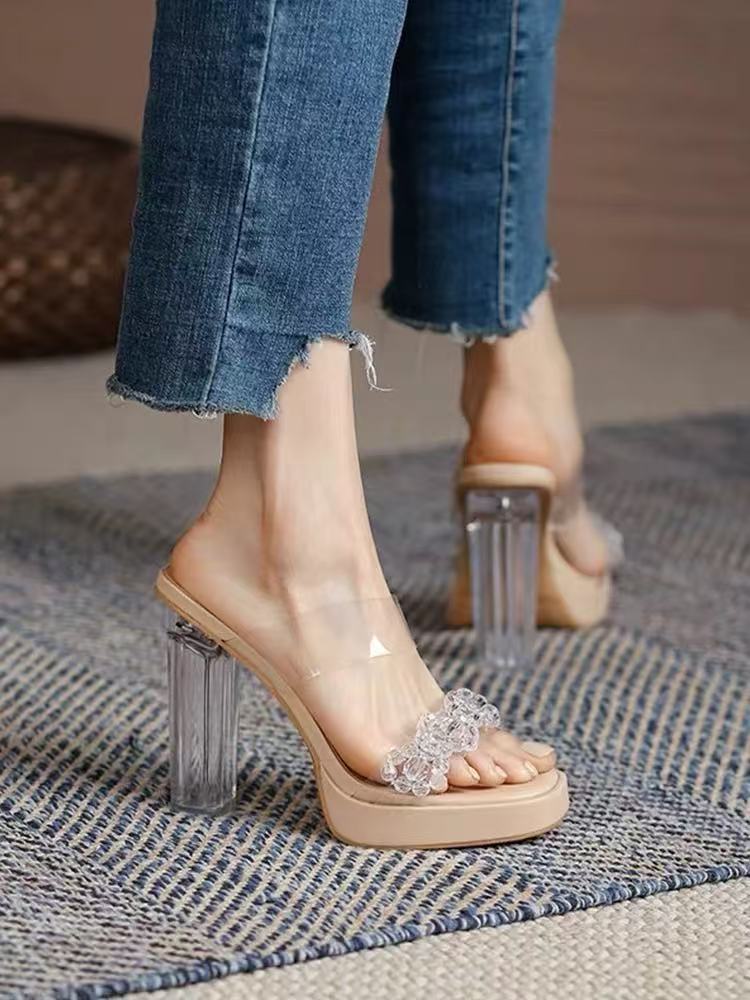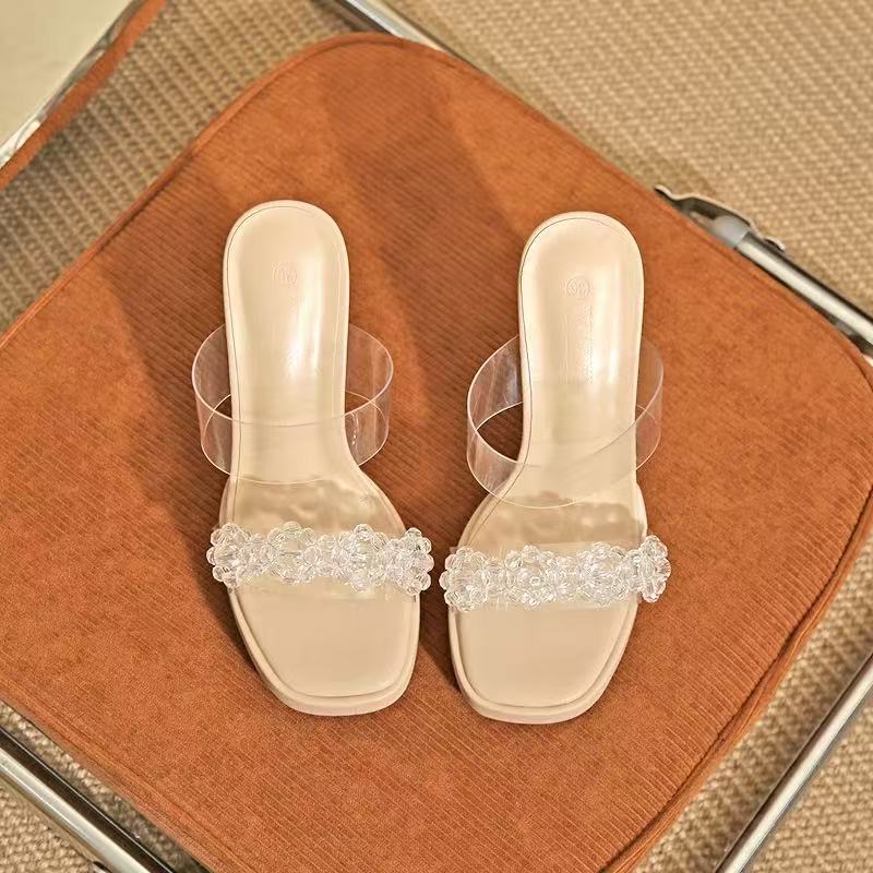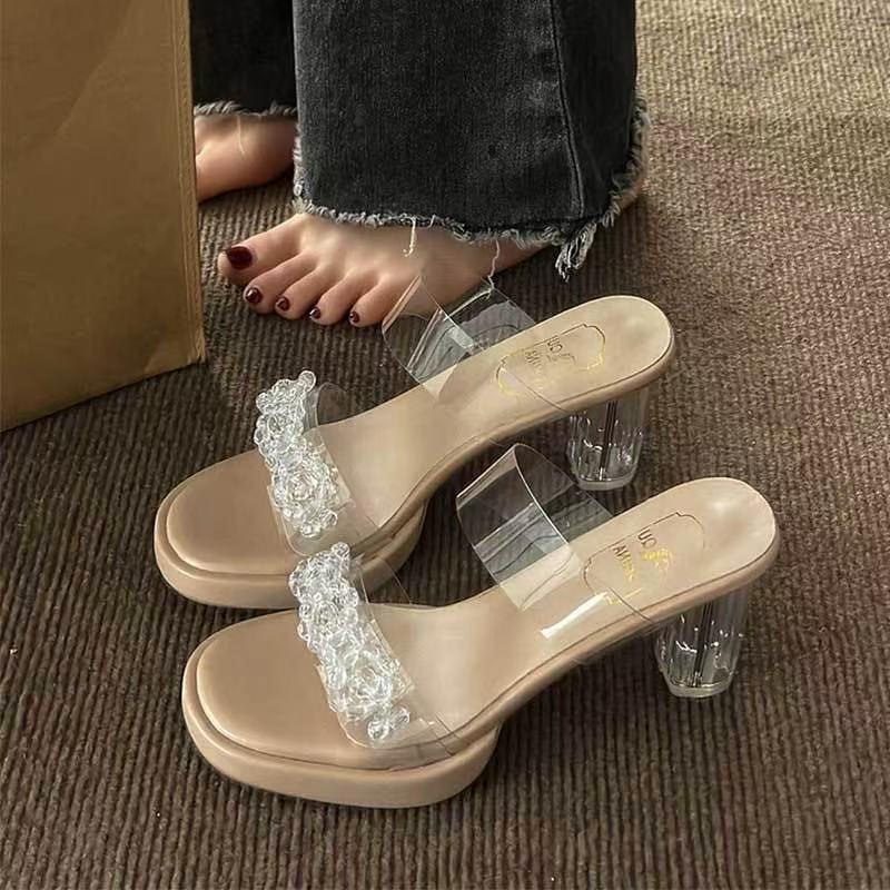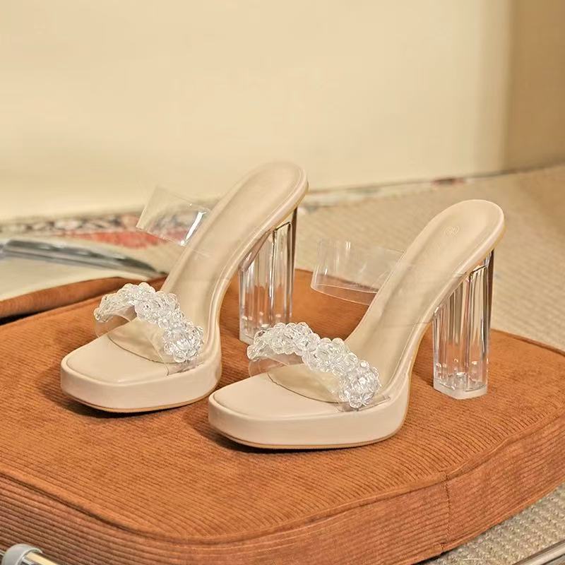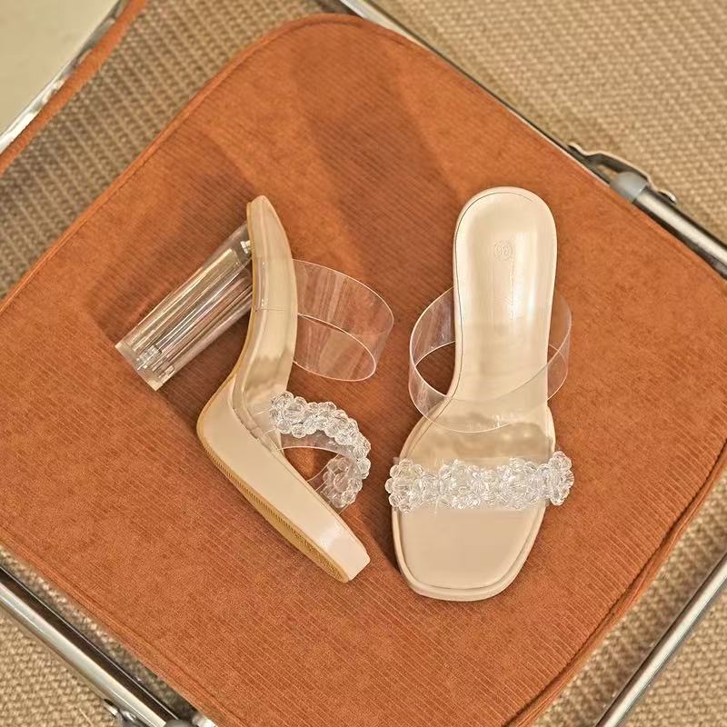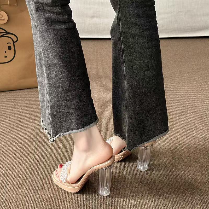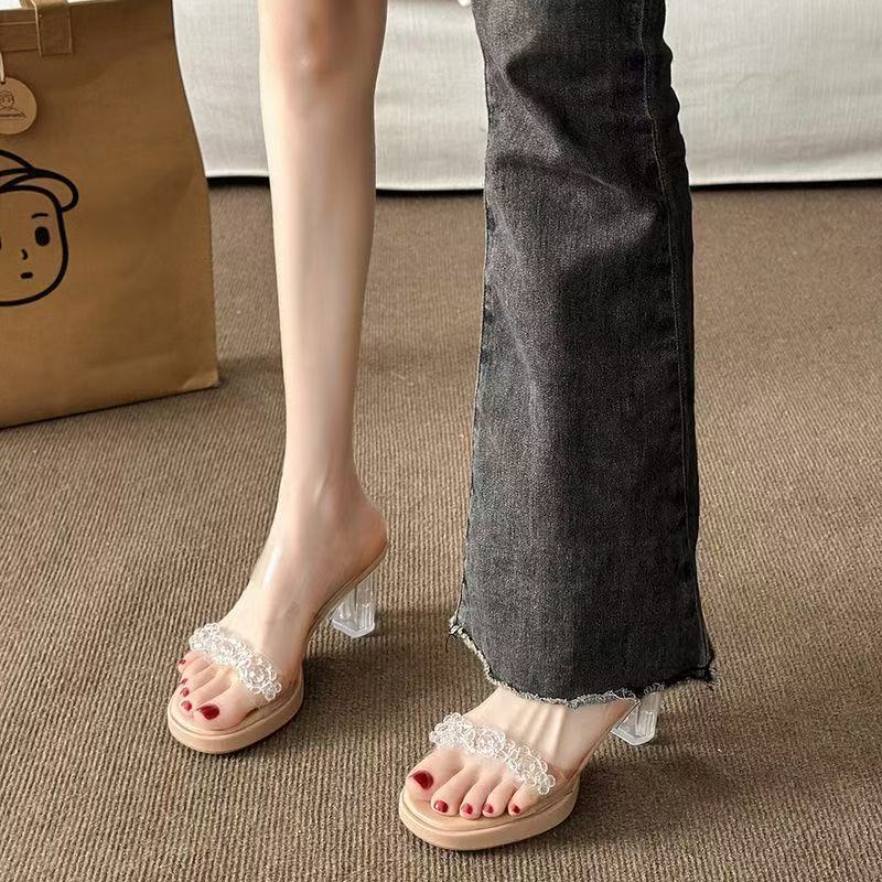 2025년 인터넷 연예인 신작 틈새 디자인 스커트와 매치하기 좋은 여성 하이힐 샌들, 우아한 슬리퍼 느낌
