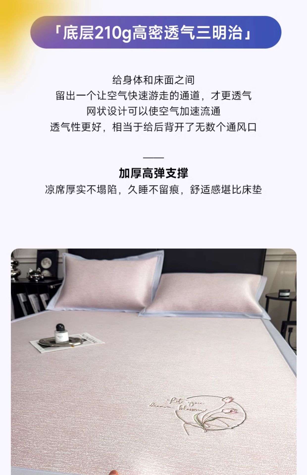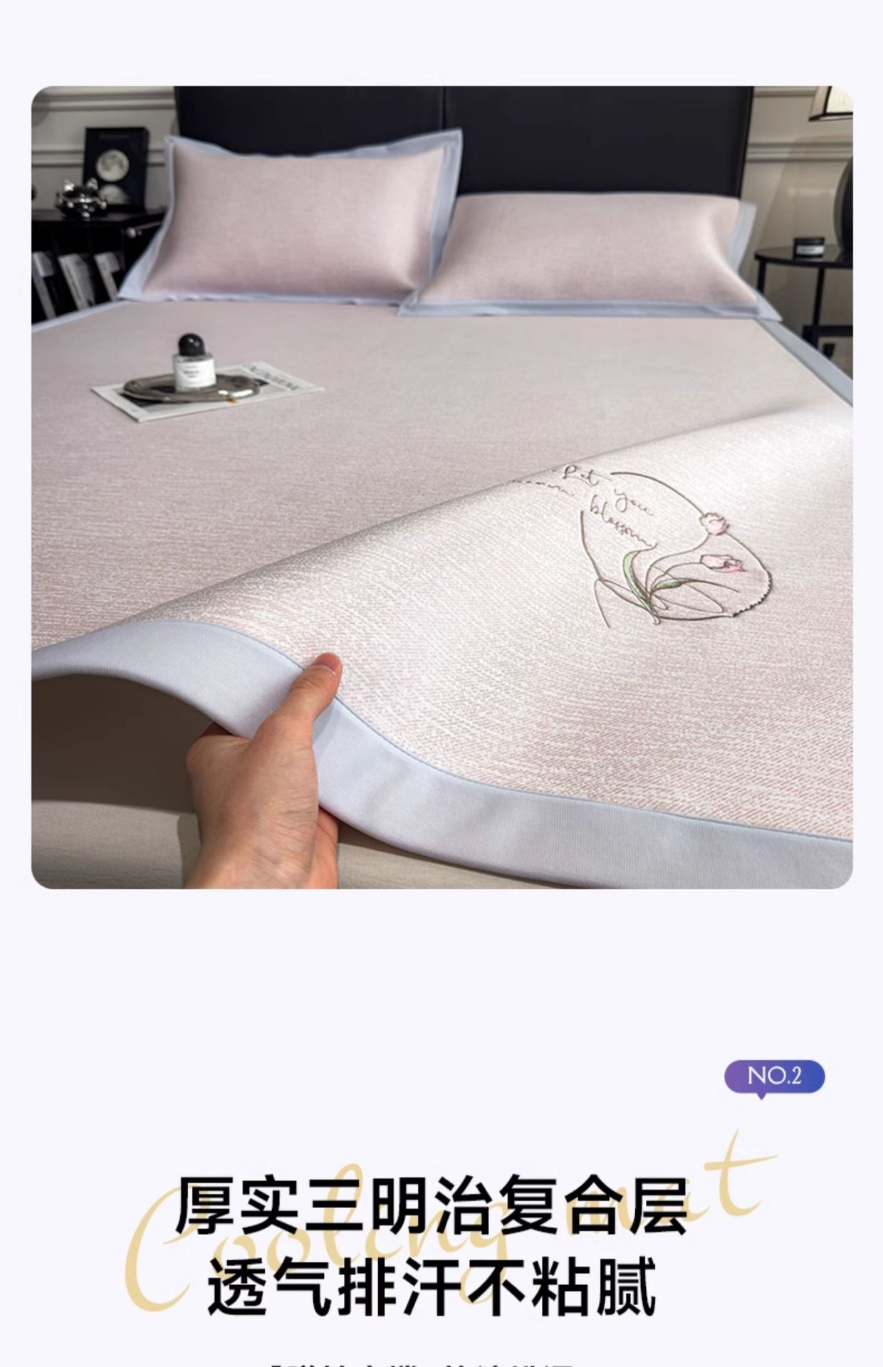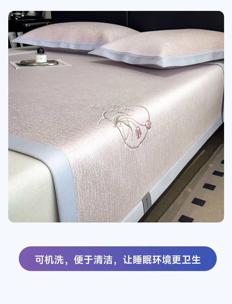 PE50 시원한 느낌 자수 여름 여름 아이스 실크 매트 3 피스 홈 싱글 여름 접이식 에어컨 매트스토어 가기