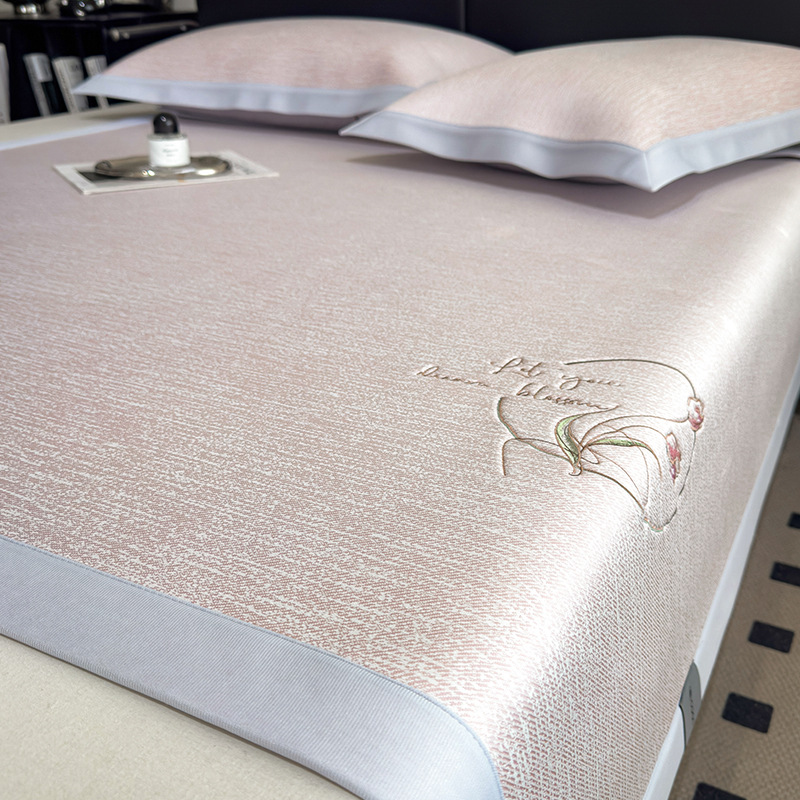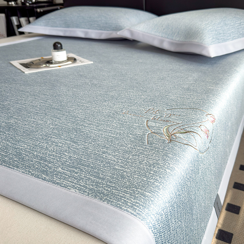PE50 시원한 느낌 자수 여름 여름 아이스 실크 매트 3 피스 홈 싱글 여름 접이식 에어컨 매트