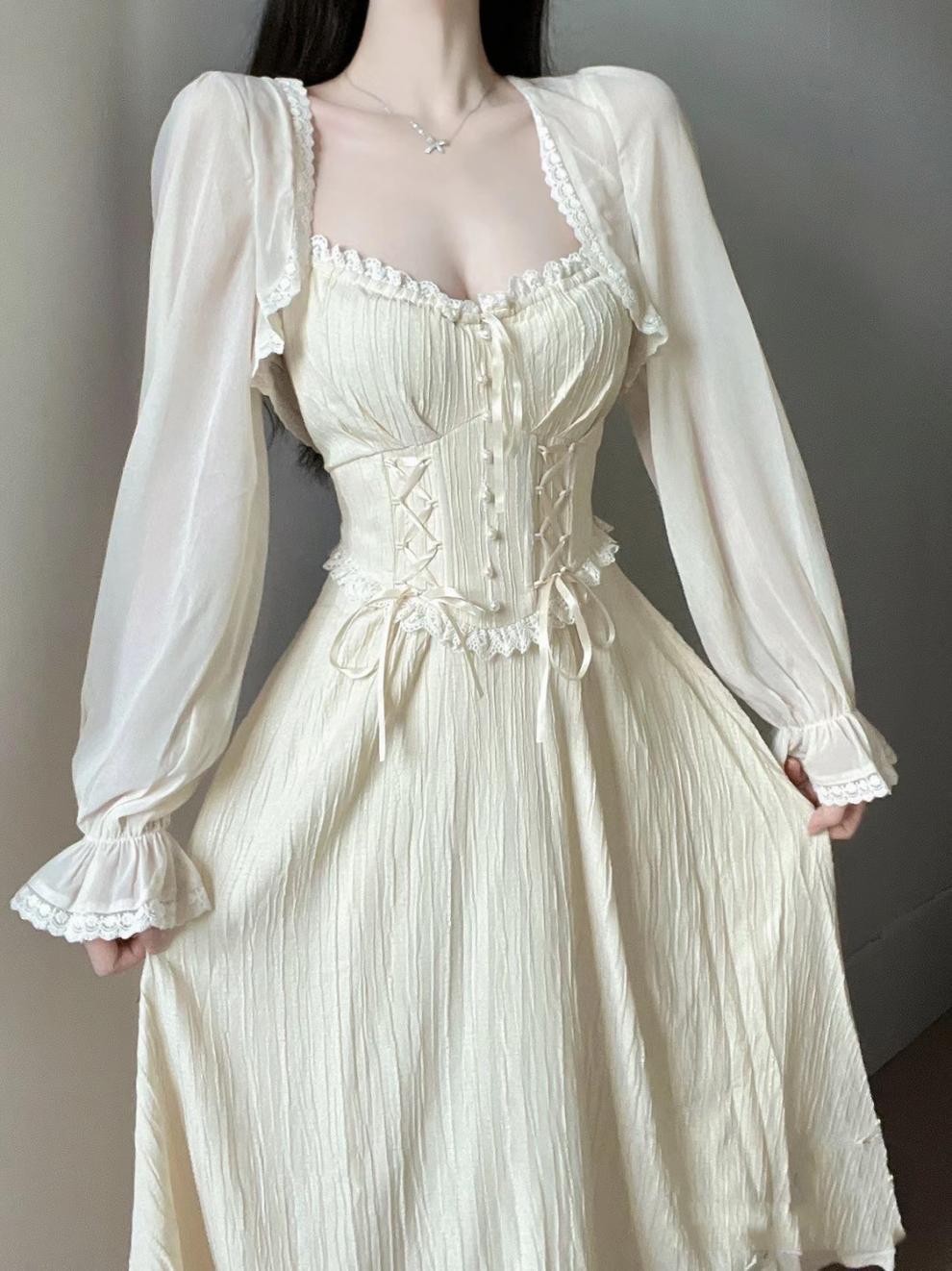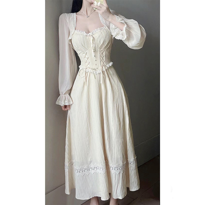 프렌치 스타일의 부드럽고 순수한 섹시 스타일 허리 레이스 서스펜더 드레스 쉬폰 가디건 요정 자외선 차단 블라우스 여성용 투피스 세트스토어 가기