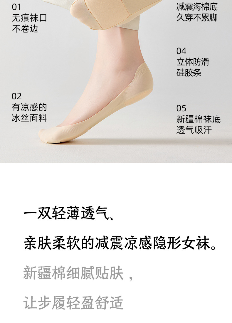 아이스 실크 보트 양말 여성 여름 얇은 실리콘 안티 슬립 하이힐 양말 여성용 짧은 양말 순면 얕은 입 보이지 않는 양말