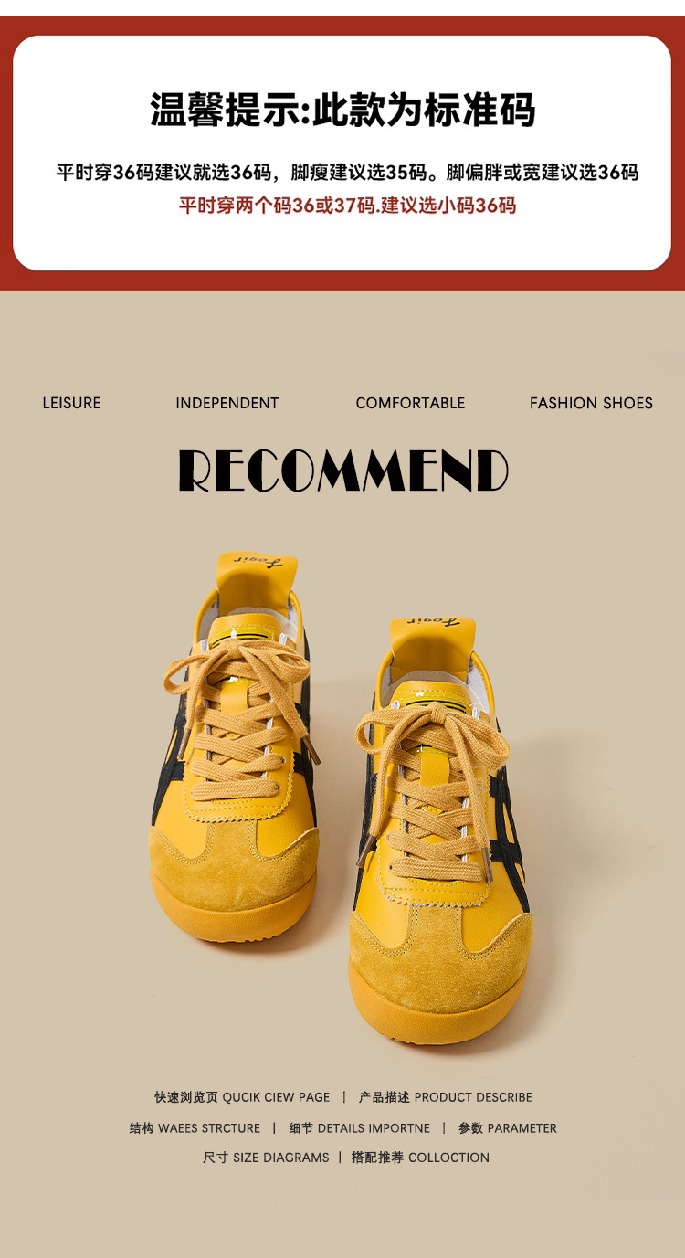 소가죽 내부 강화 노란색 독일 훈련 신발 여성의 2025 새로운 복고풍 색상과 부드러운 바닥 캐주얼 스포츠 포레스트 검프 슈즈의 첫 번째 레이어스토어 가기