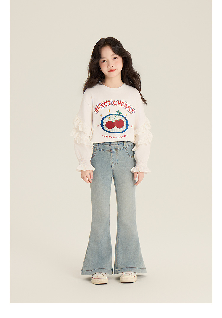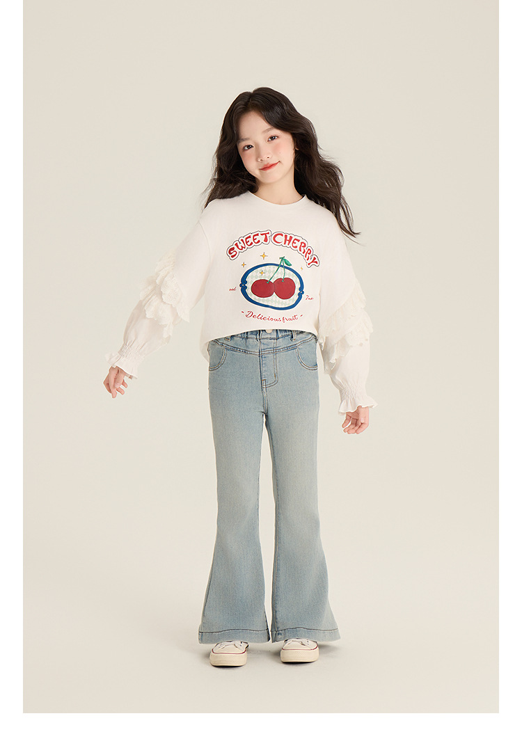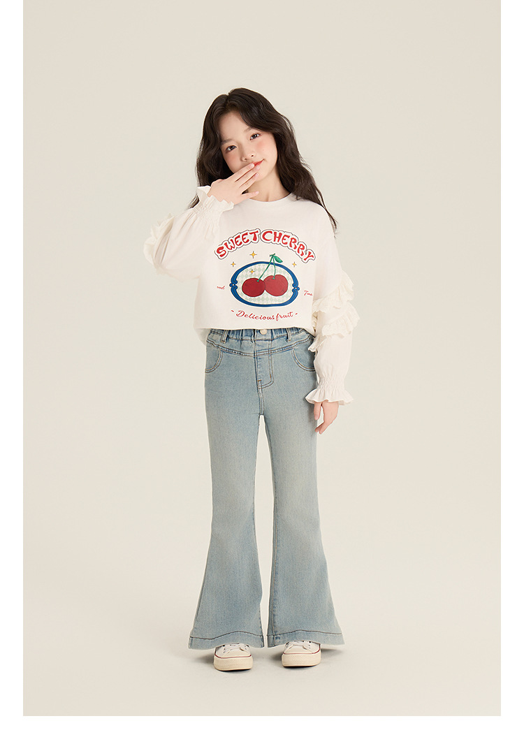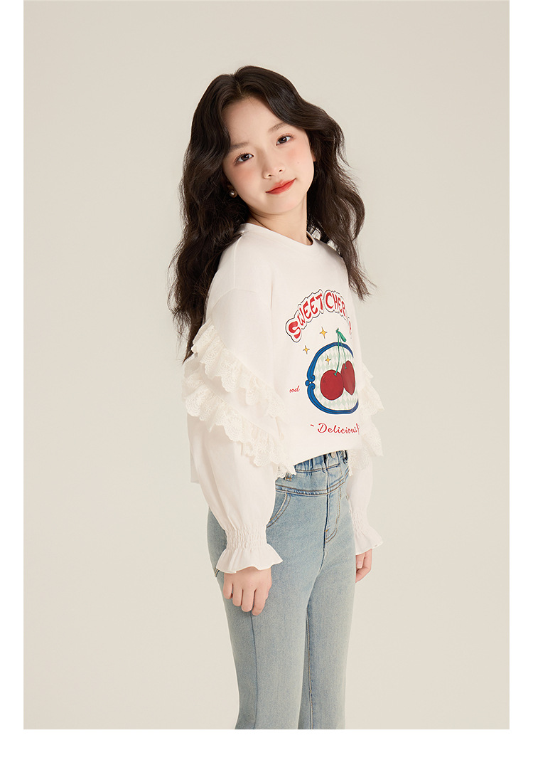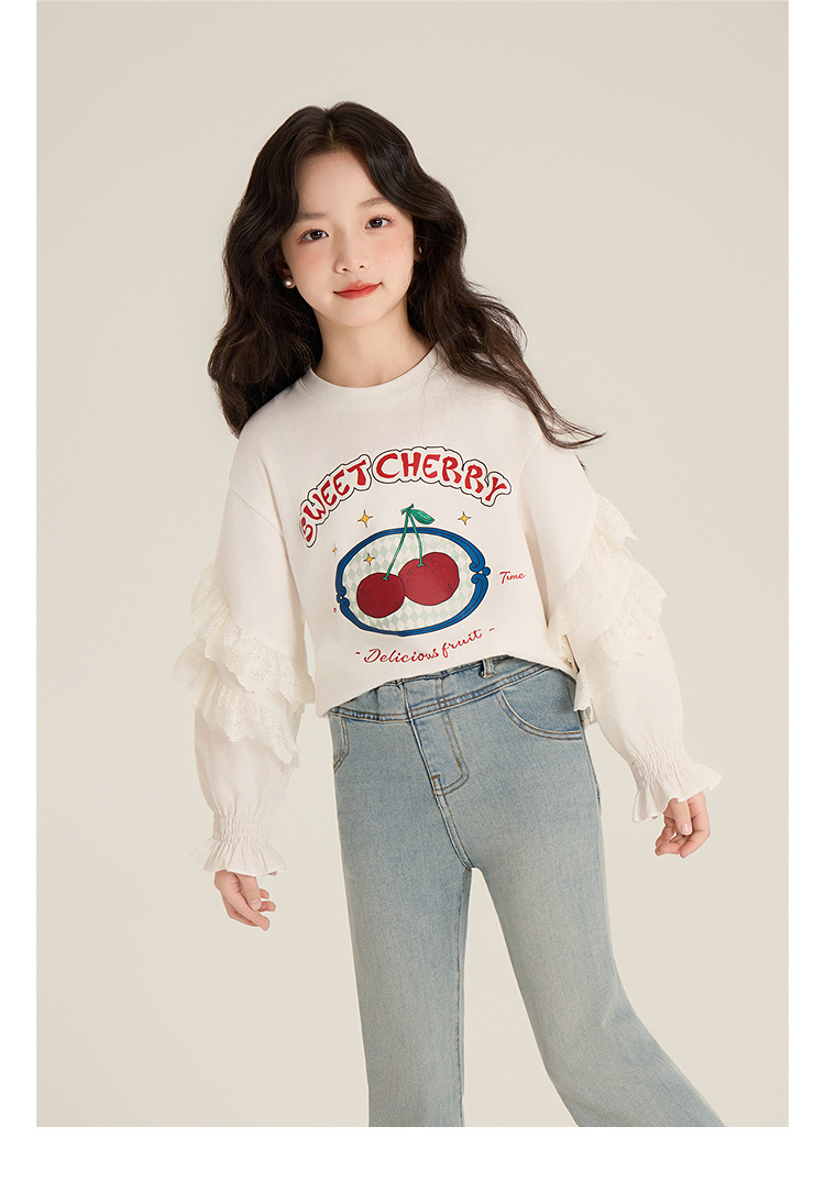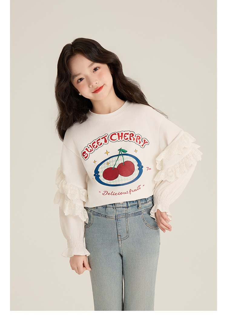 Amybaby 소녀 최고 봄 2025 새로운 디자인 미국 복고풍 작은 체리 인쇄 긴 소매 T스토어 가기