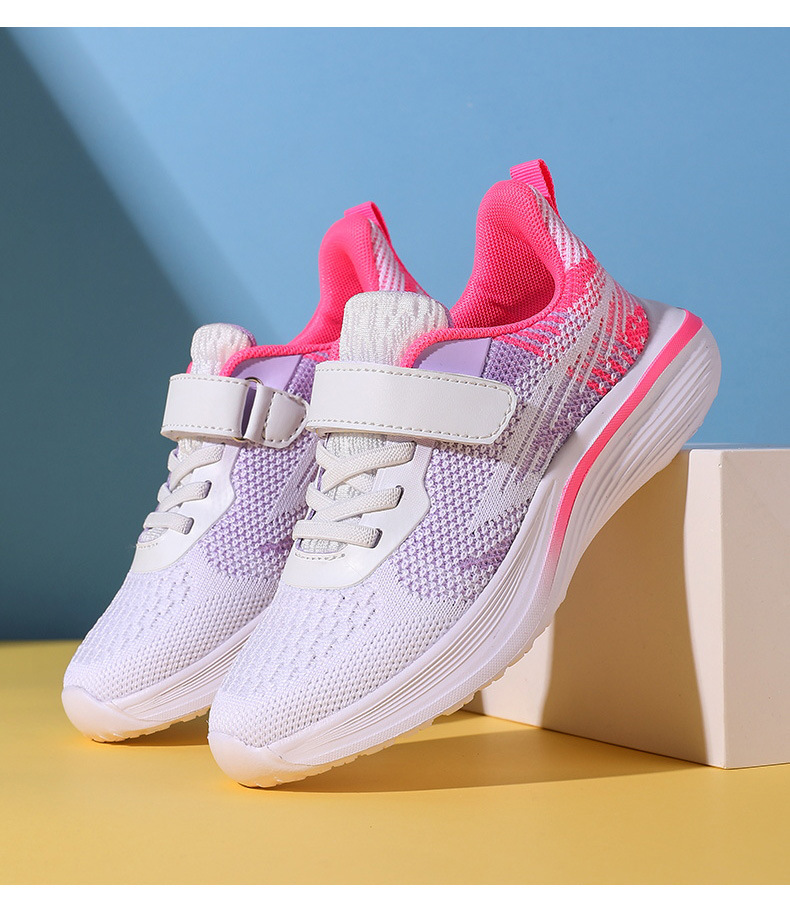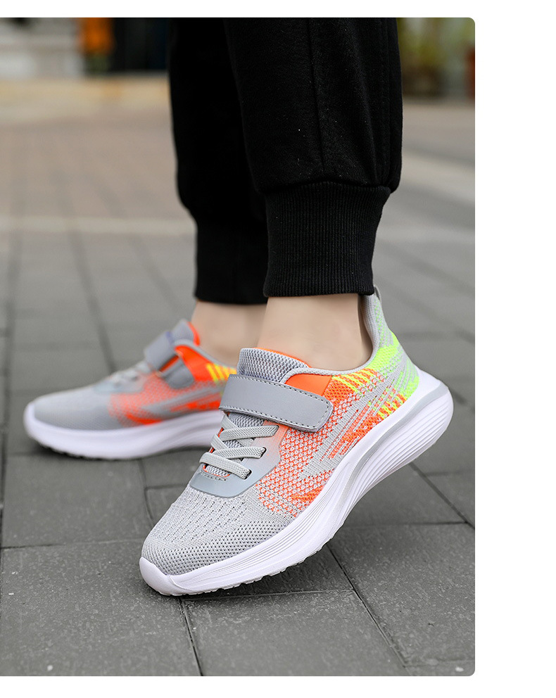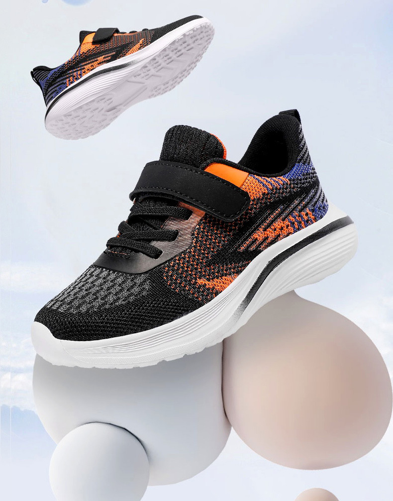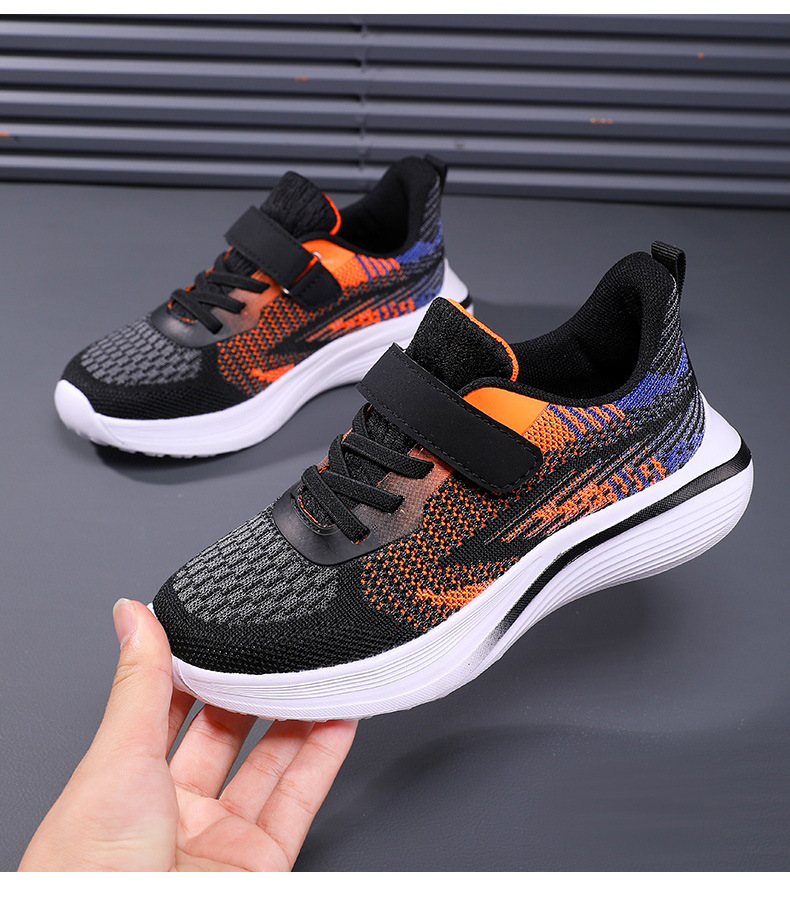 새로운 캐주얼 스포츠 통기성 플라이 짠 스포츠 아동 신발 운동화 중대형 어린이를위한 중공 통기성 구멍 메쉬 소년