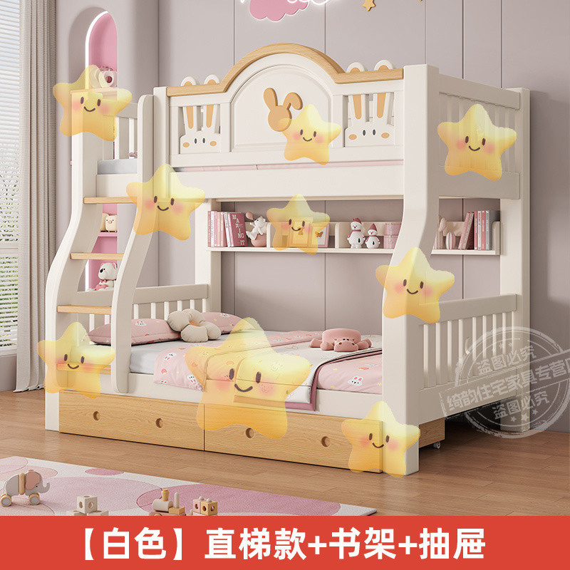 • (흰색 침대에는 매트리스가 포함되어 있습니다.) 직선형 사다리 스타일 + 책장 + 서랍 + 위층 배송