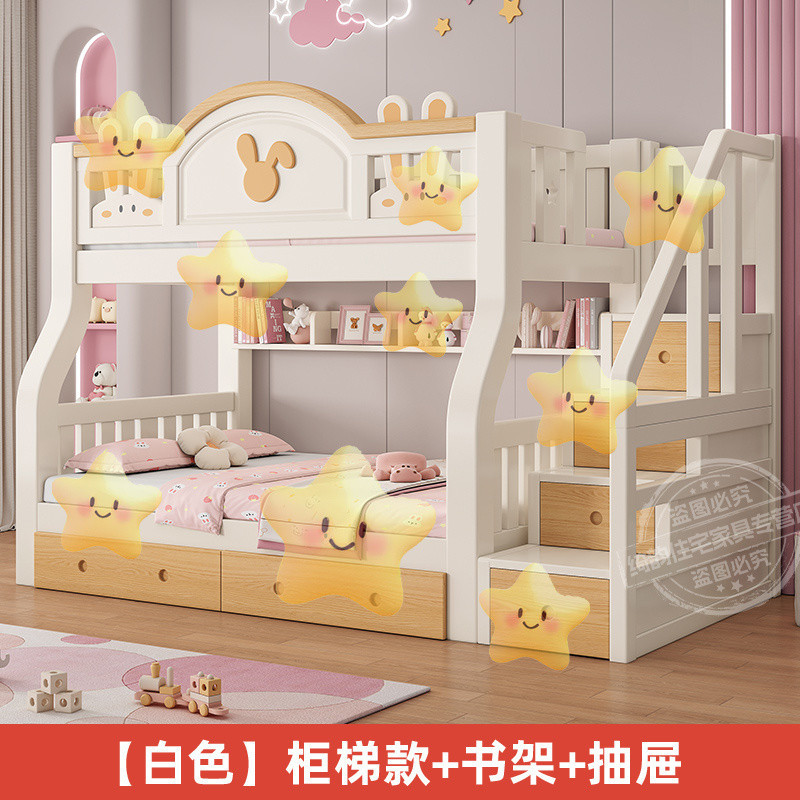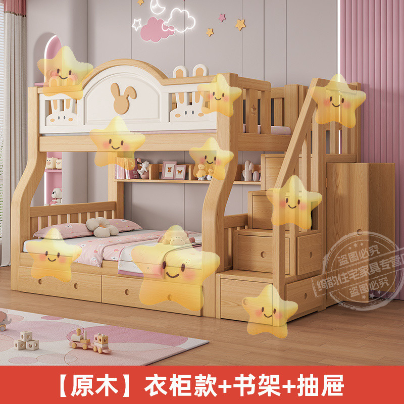 Yla 단단한 나무 이층 침대 어린이 침대 2층 침대 만화 어린이 침대 높낮이 이층 침대 작은 아파트 더블스토어 가기