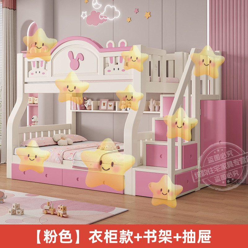 • (핑크색 침대에는 매트리스가 포함되어 있습니다.) 옷장 스타일 + 책장 + 서랍 + 위층 배송